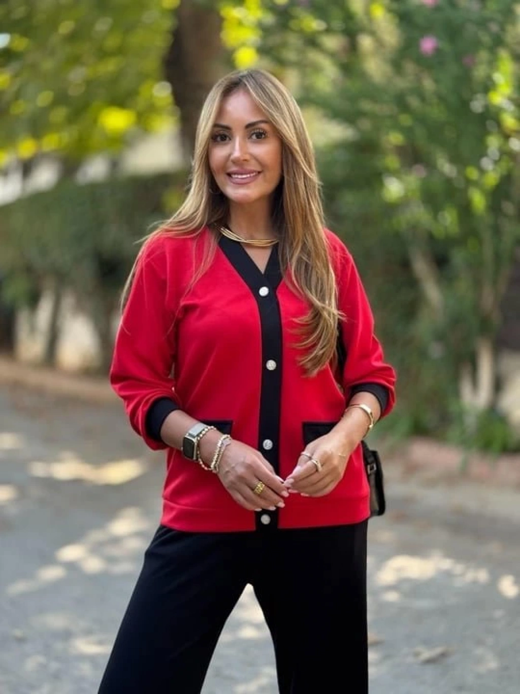Kadın Uzun Kollu Ribanali Cep Detay Hırka Ve Bol Paça Pantolon Ikili Takım