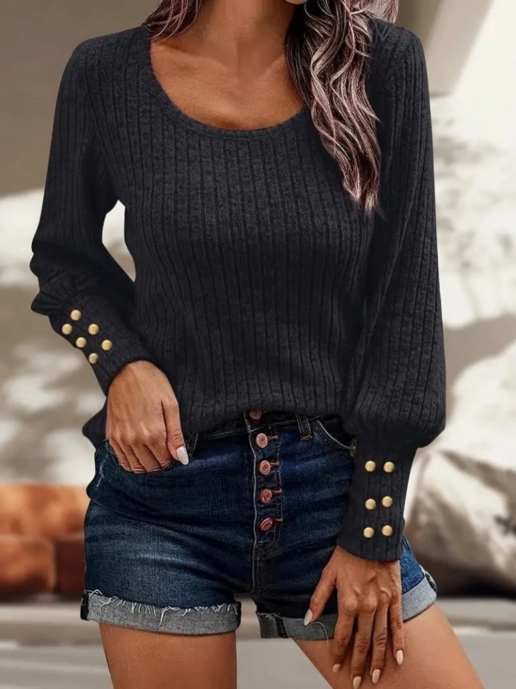 Kadın Uzun Kollu şardonlu Kolu Düğme Detay Kaşkorse Bluz