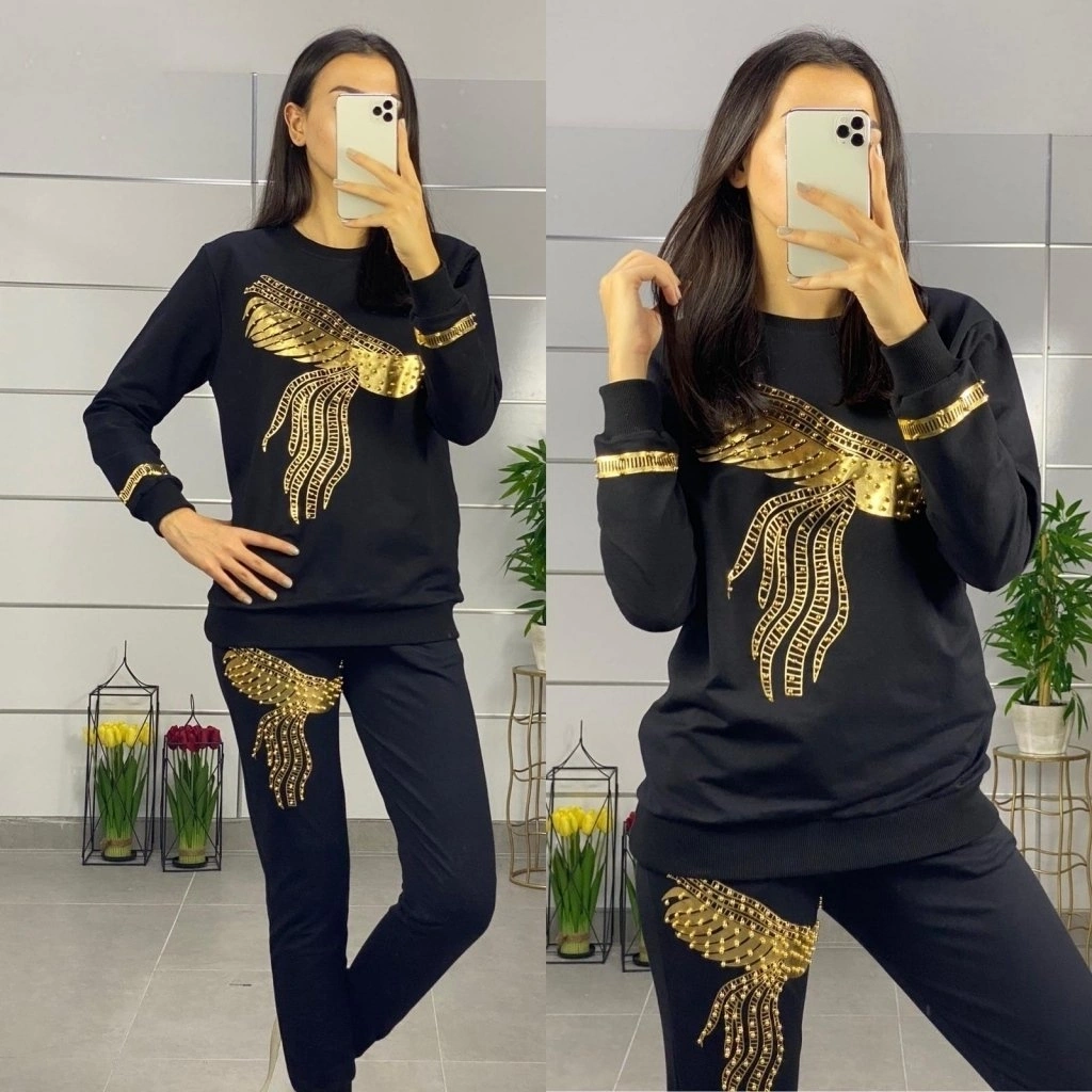 Kadın Uzun Kollu Tavus Kuşu Baskılı Iki Iplik Ikili Takım