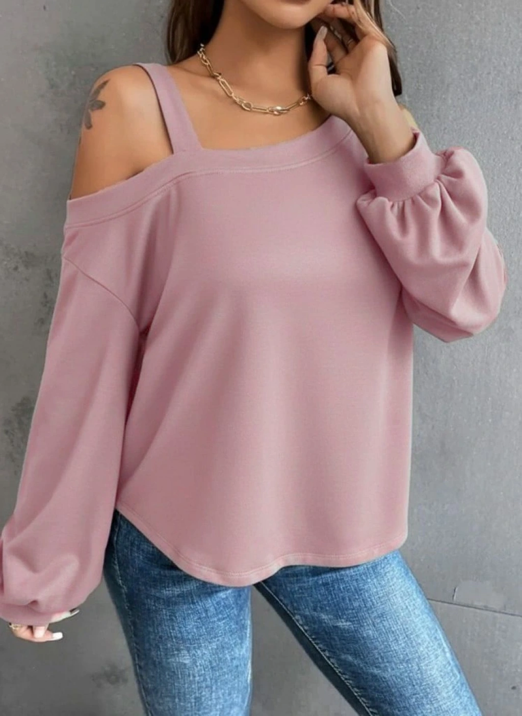 Kadın Uzun Kollu Tek Omuz Askı Detay Salaş Dalgıç Bluz