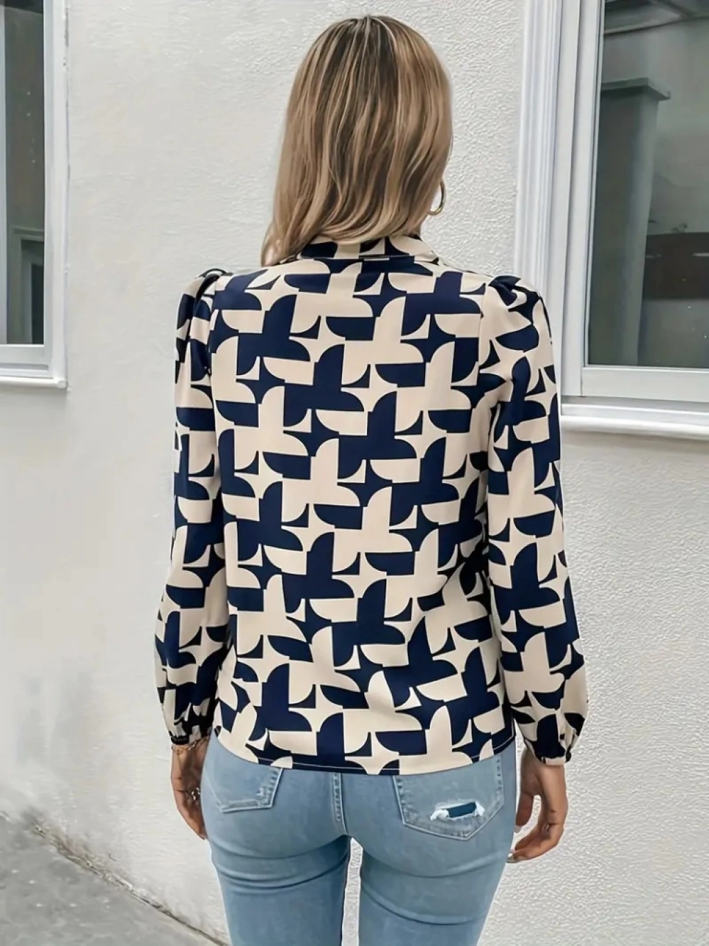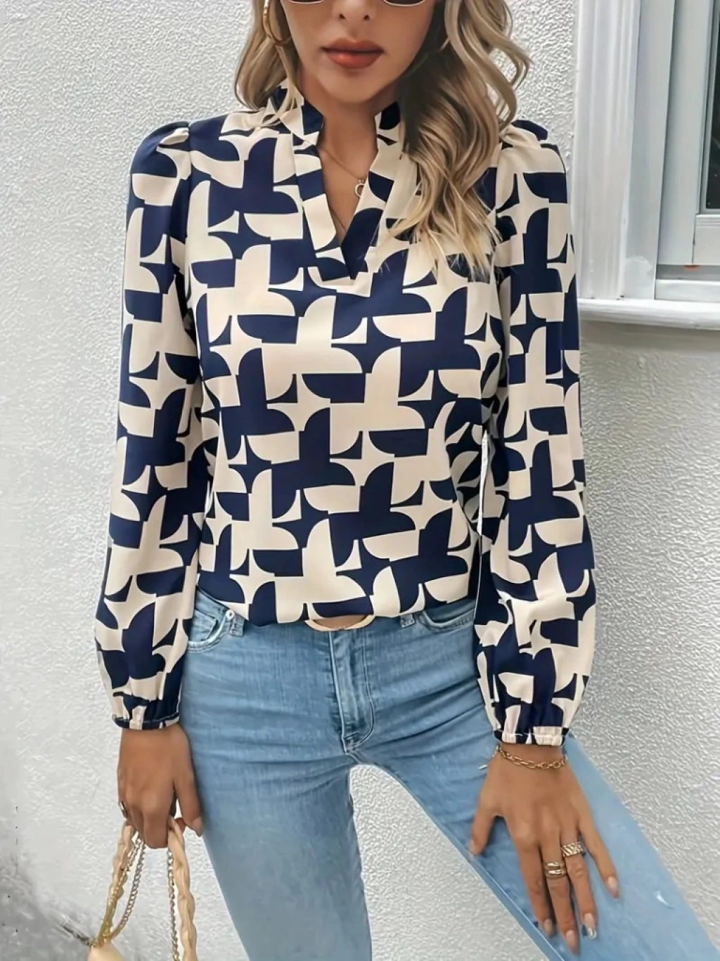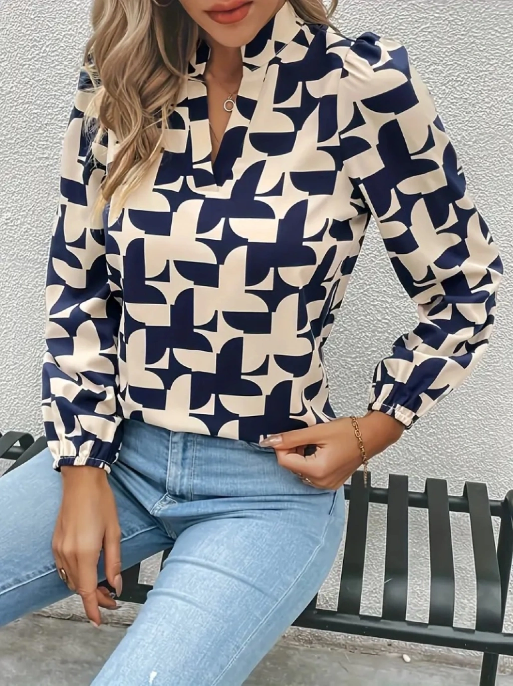 Kadın Uzun Kollu V Hakim Yaka Desenli Dalgıç Bluz