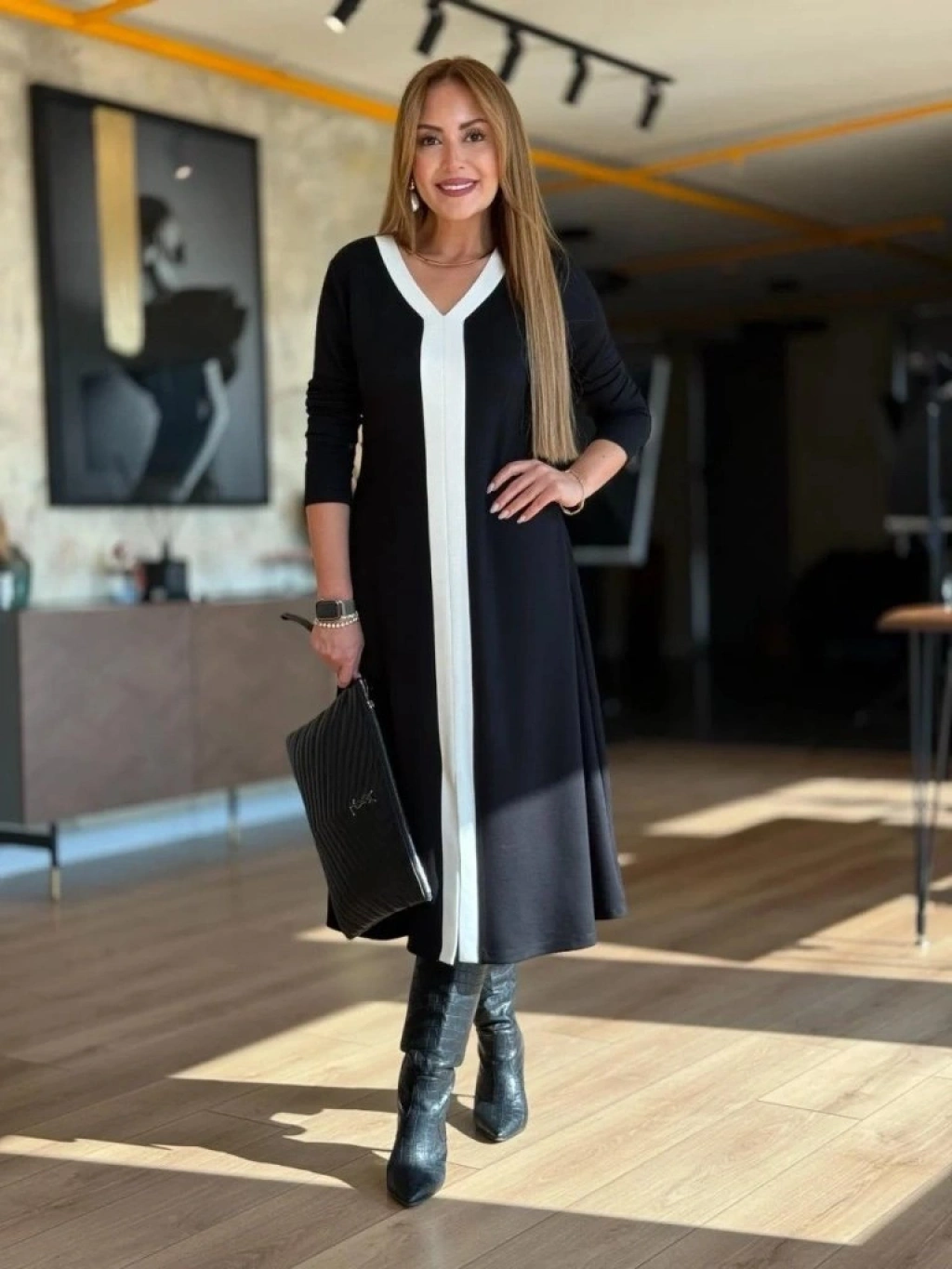 Modelin Ölçüleri: Boy:165, Kg:55, Göğüs:90, Bel:72, Kalça: 100
