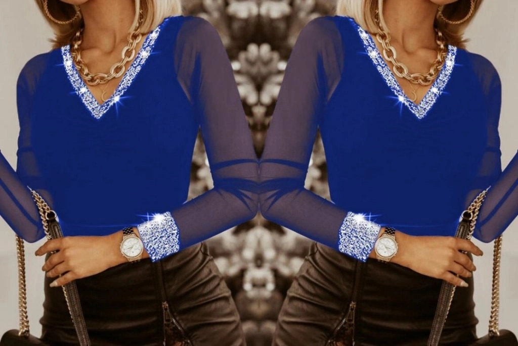 Kadın Uzun Kollu V Yaka Kollar Tül Yaka Ve Kol Ağzı Payet Detay Viskon Bluz