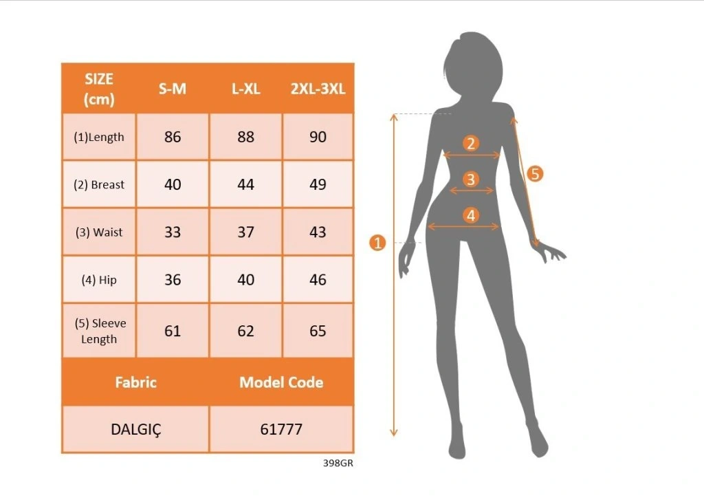 Modelin Ölçüleri: Boy:165, Kg:55, Göğüs:90, Bel:72, Kalça: 100