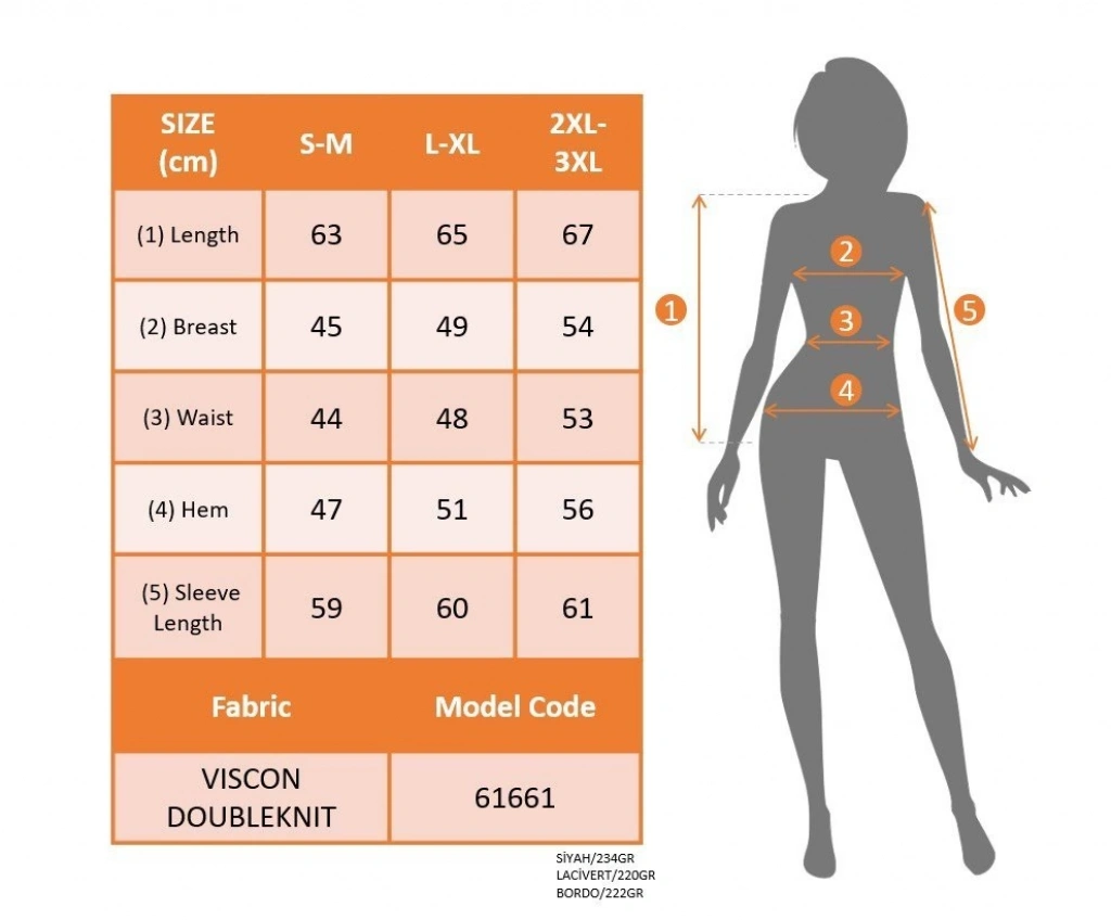 Modelin Ölçüleri: Boy:165, Kg:55, Göğüs:90, Bel:72, Kalça: 100