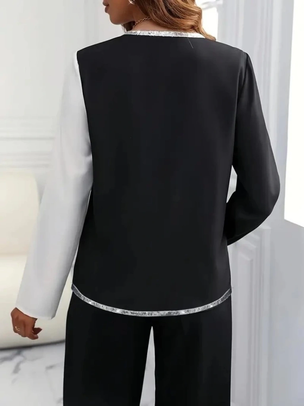 Kadın Uzun Kollu V Yakalı Pul Payet Işlemeli Ithal Krep Bluz