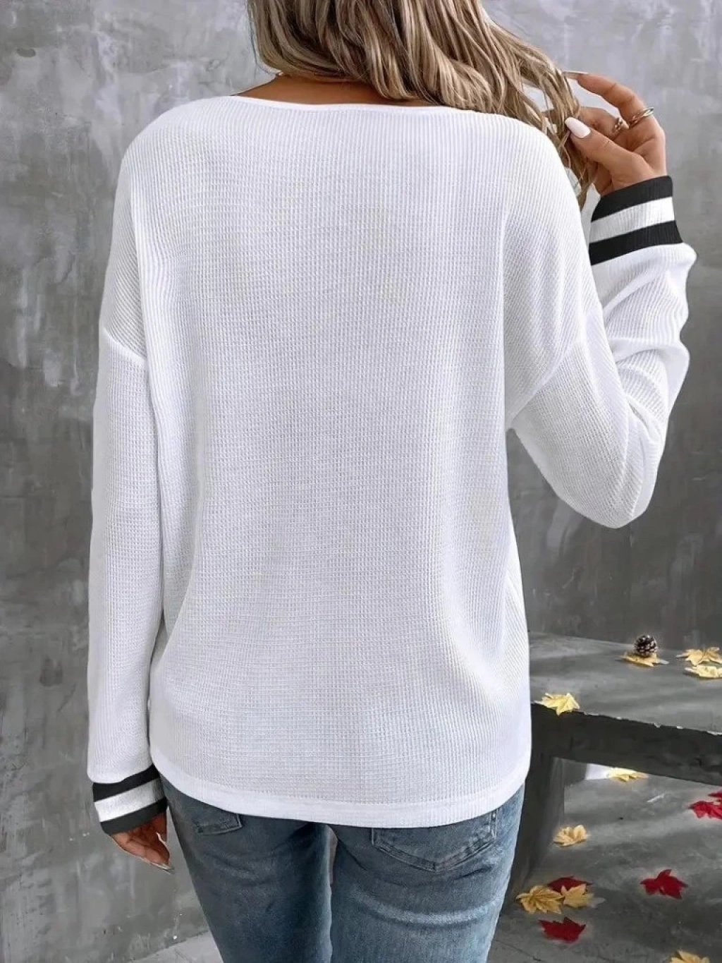 Kadın Uzun Kollu V Yakalı Waffle Bluz