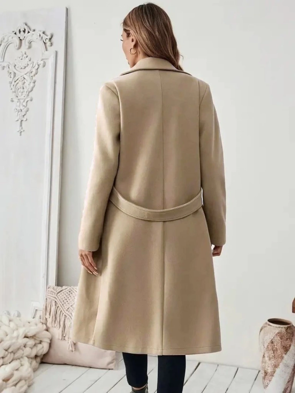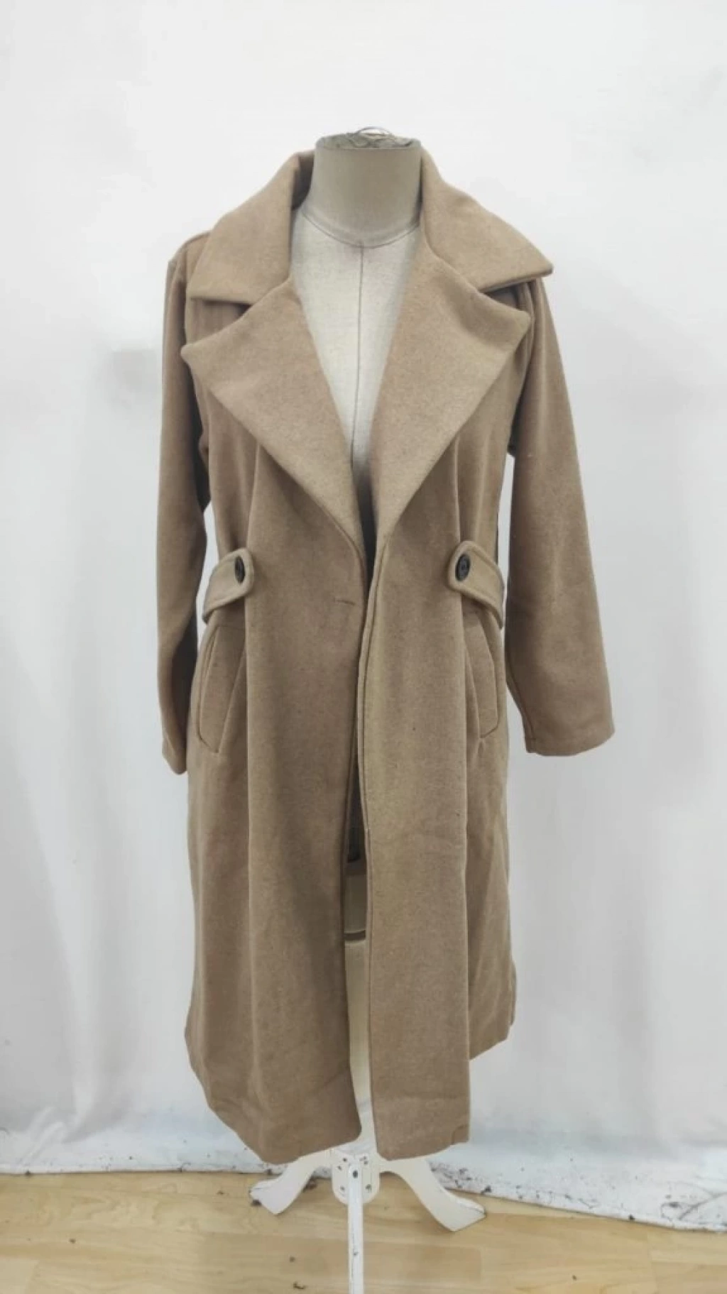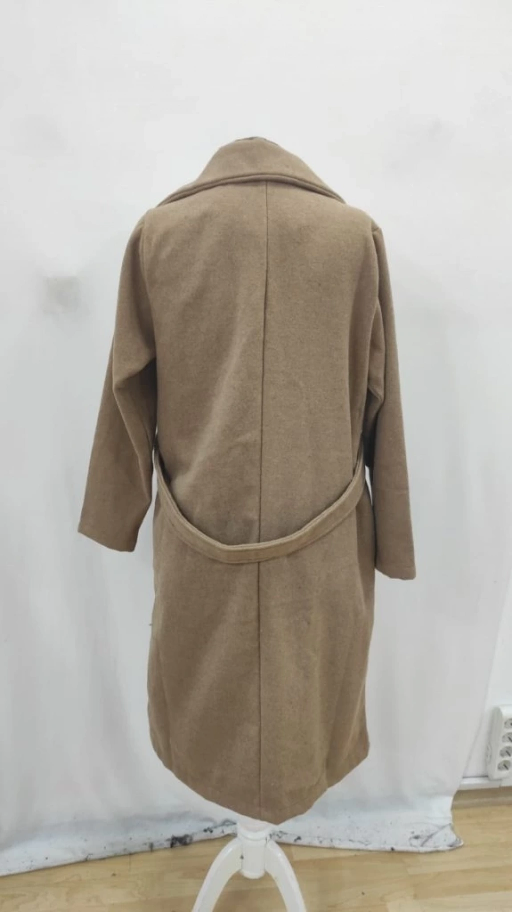 Kadın Uzun Kollu Yakalı Belde şerit Düğme Detaylı Cepli Mini Kaşe Kaban