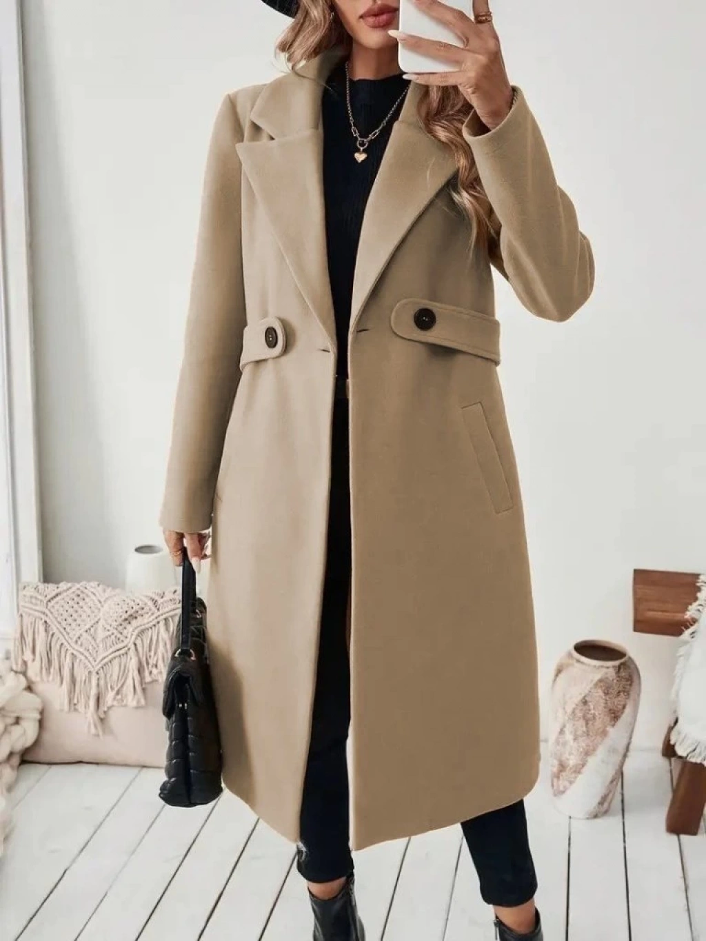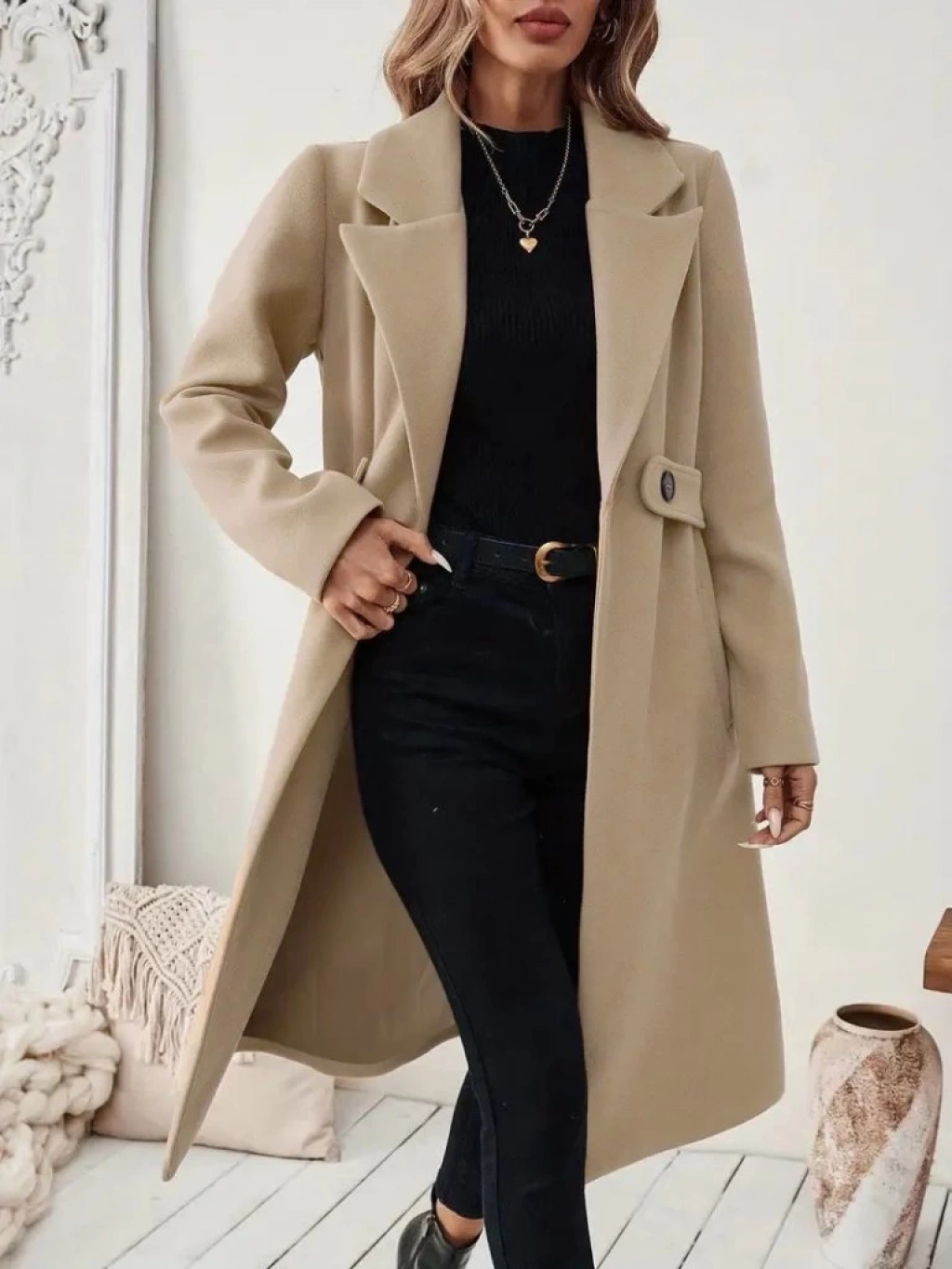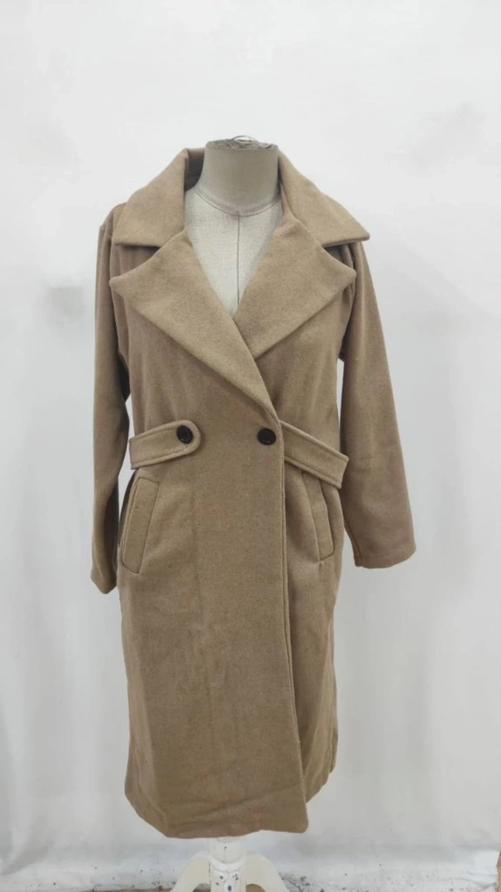 Kadın Uzun Kollu Yakalı Belde şerit Düğme Detaylı Cepli Mini Kaşe Kaban