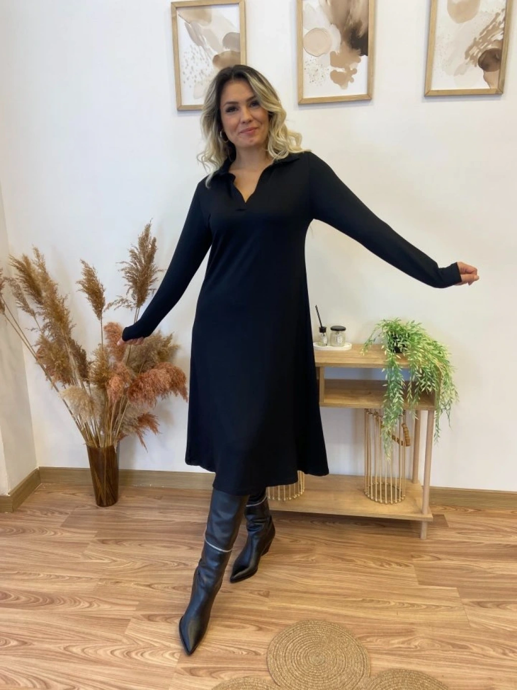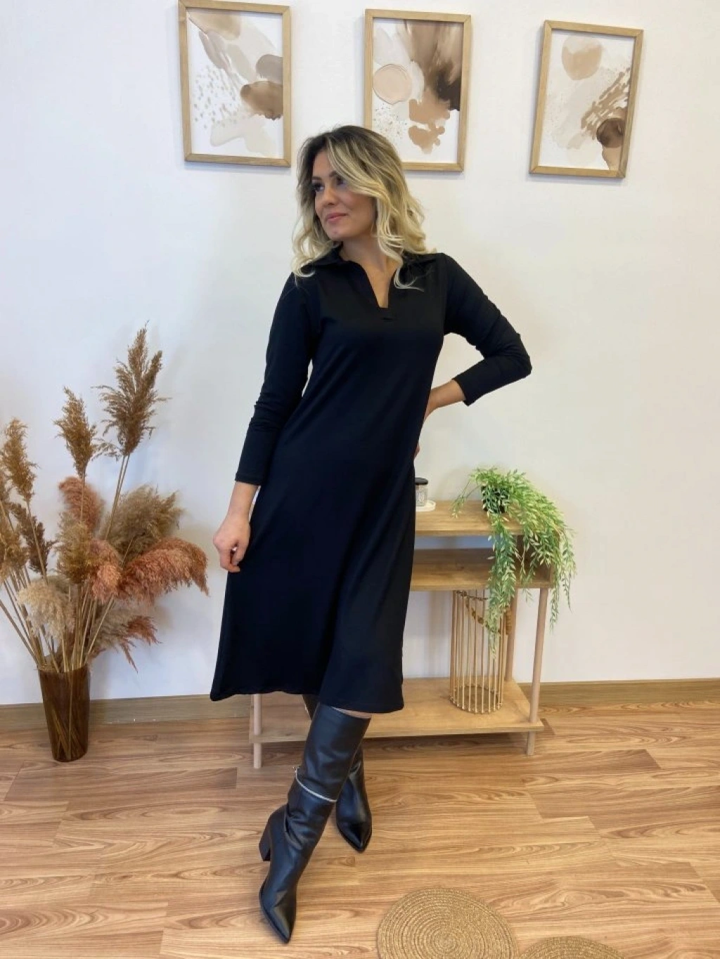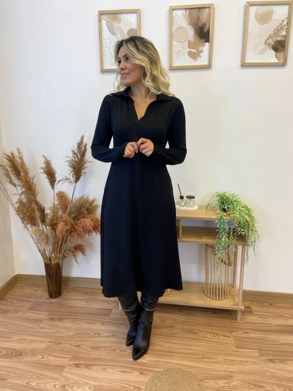 Kadın Uzun Kollu Yakalı Midi Viskon Iki Iplik Elbise