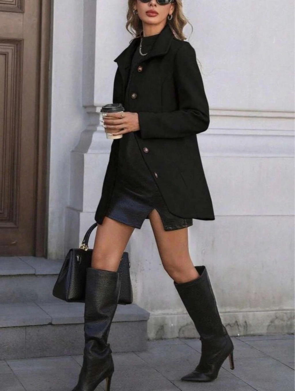Kadın Uzun Kollu Yakalı önden Düğmeli Astarsız Ithal Kaşe Kaban