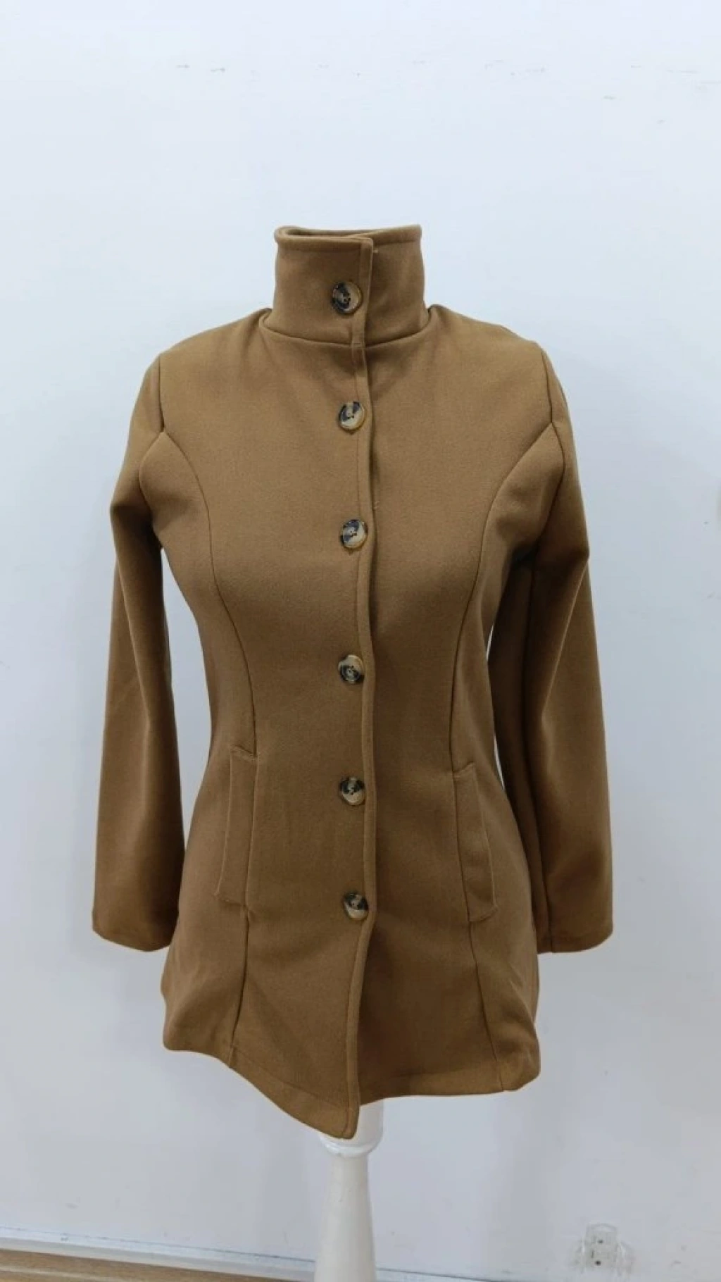 Kadın Uzun Kollu Yakalı önden Düğmeli Astarsız Ithal Kaşe Kahve Kaban