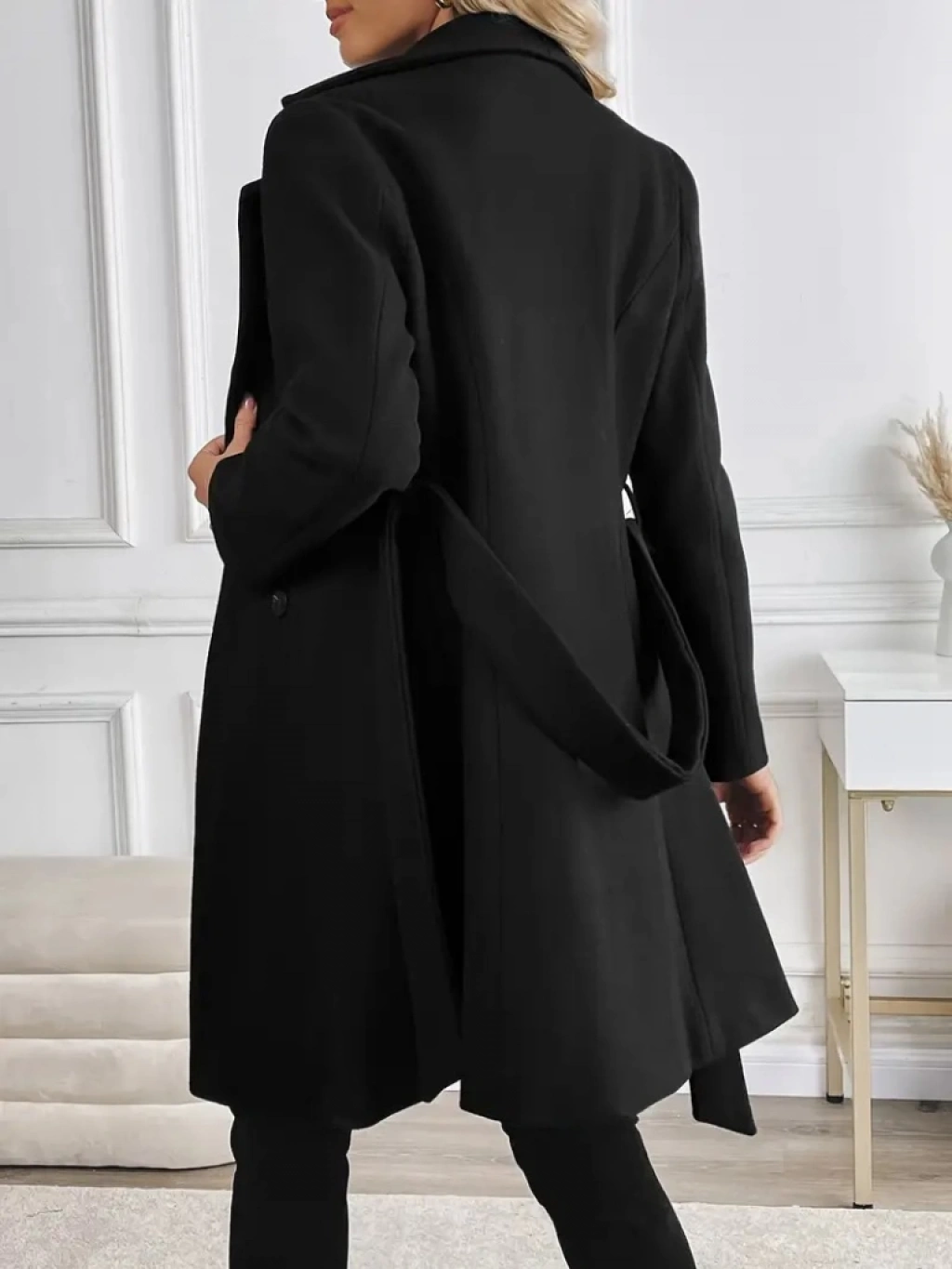 Kadın Uzun Kollu Yakalı önden Düğmeli Belden Kuşaklı Kısa Kaşe Kaban