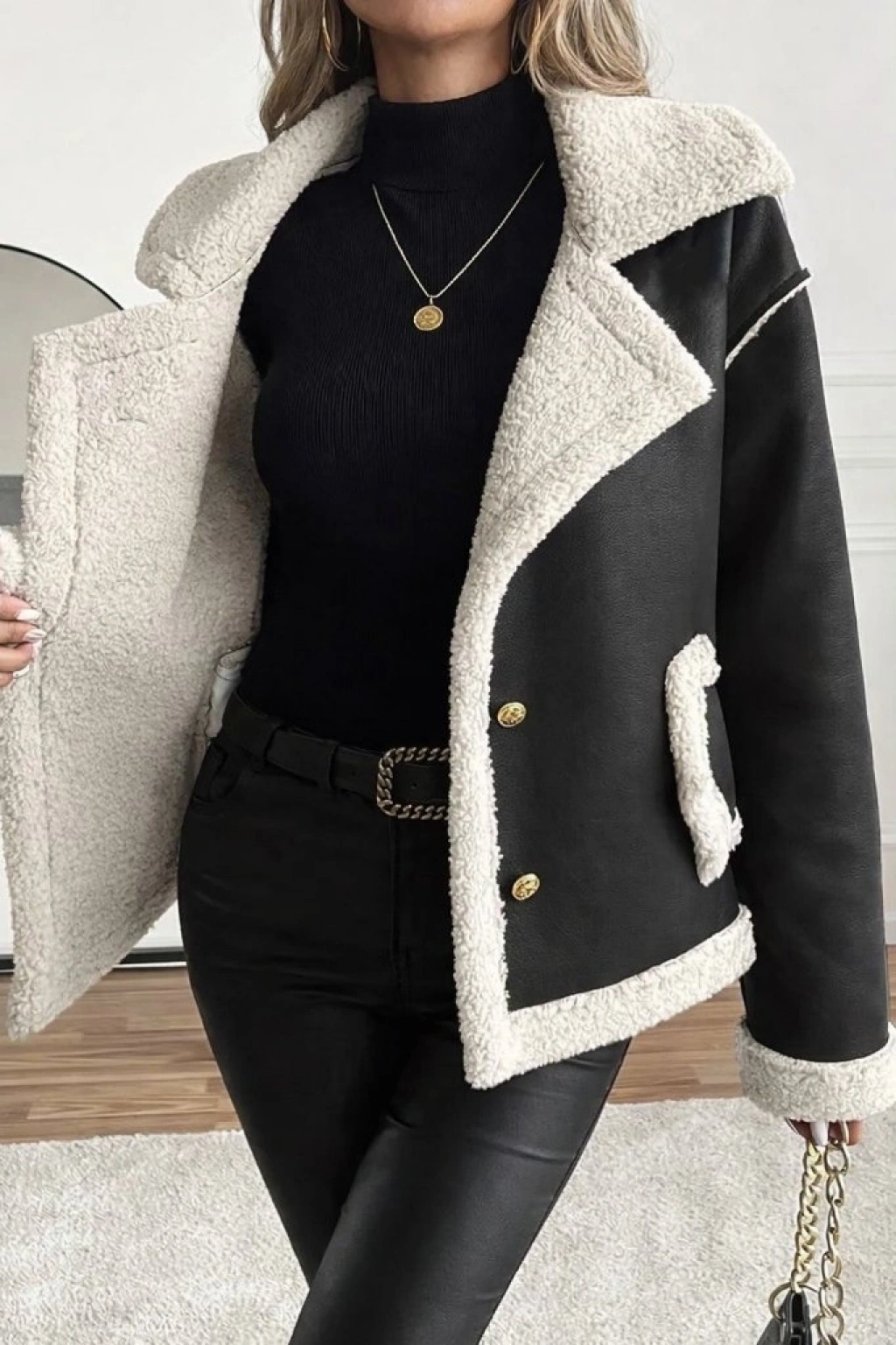 Kadın Uzun Kollu Yakalı önden Düğmeli Cep Detaylı Süet Ceket