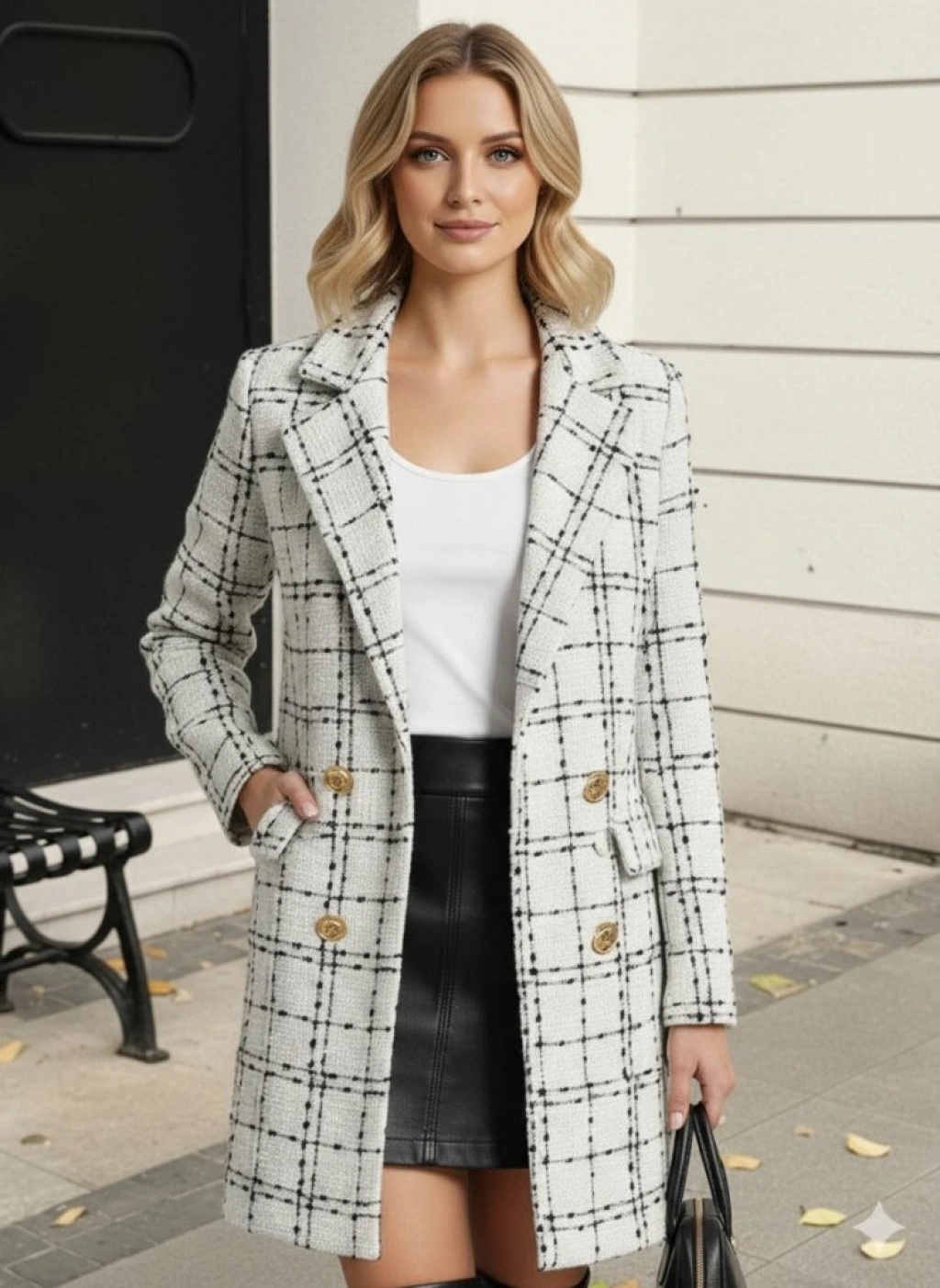 Kadın Uzun Kollu Yakalı önden Düğmeli Dokuma Ceket