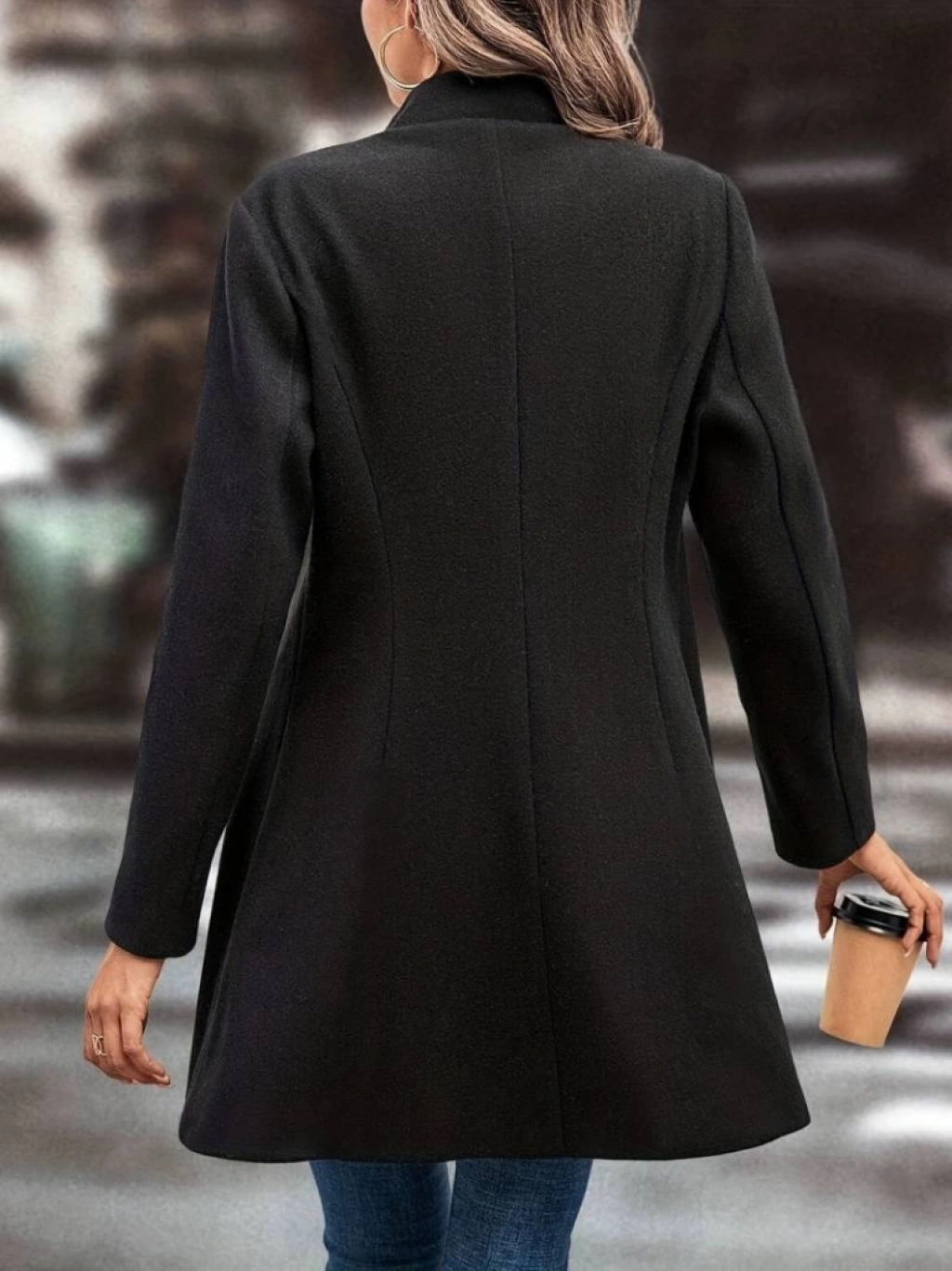 Kadın Uzun Kollu Yakalı önden Düğmeli Kısa Kaşe Kaban