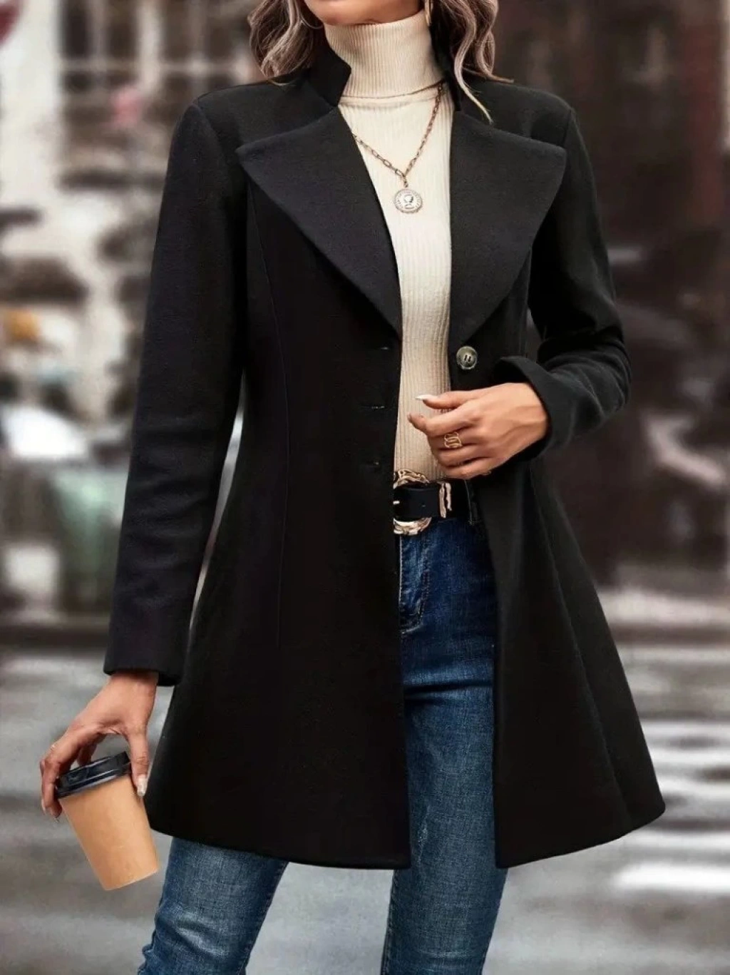 Kadın Uzun Kollu Yakalı önden Düğmeli Kısa Kaşe Kaban