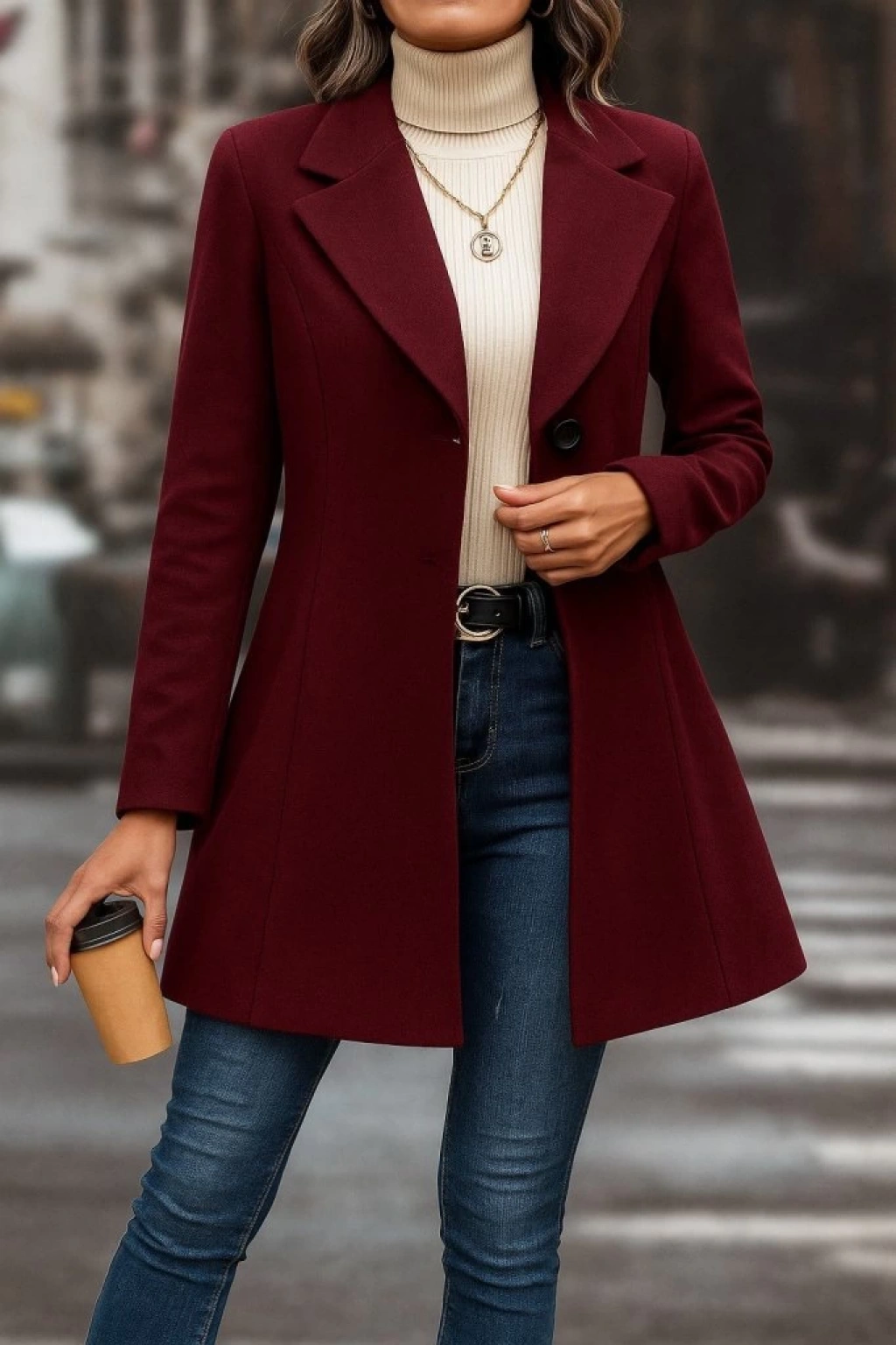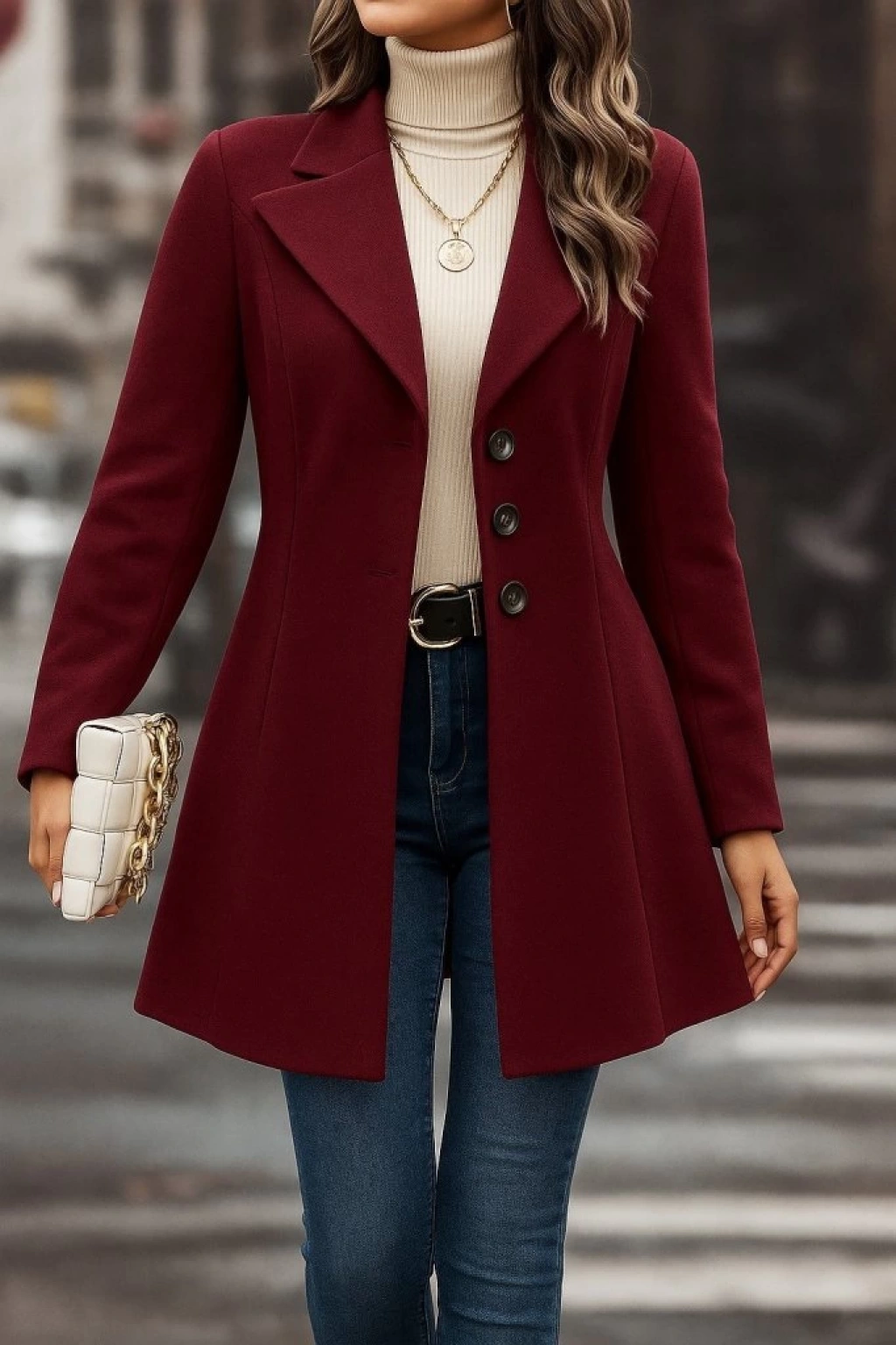 Kadın Uzun Kollu Yakalı önden Düğmeli Kısa Kaşe Kaban