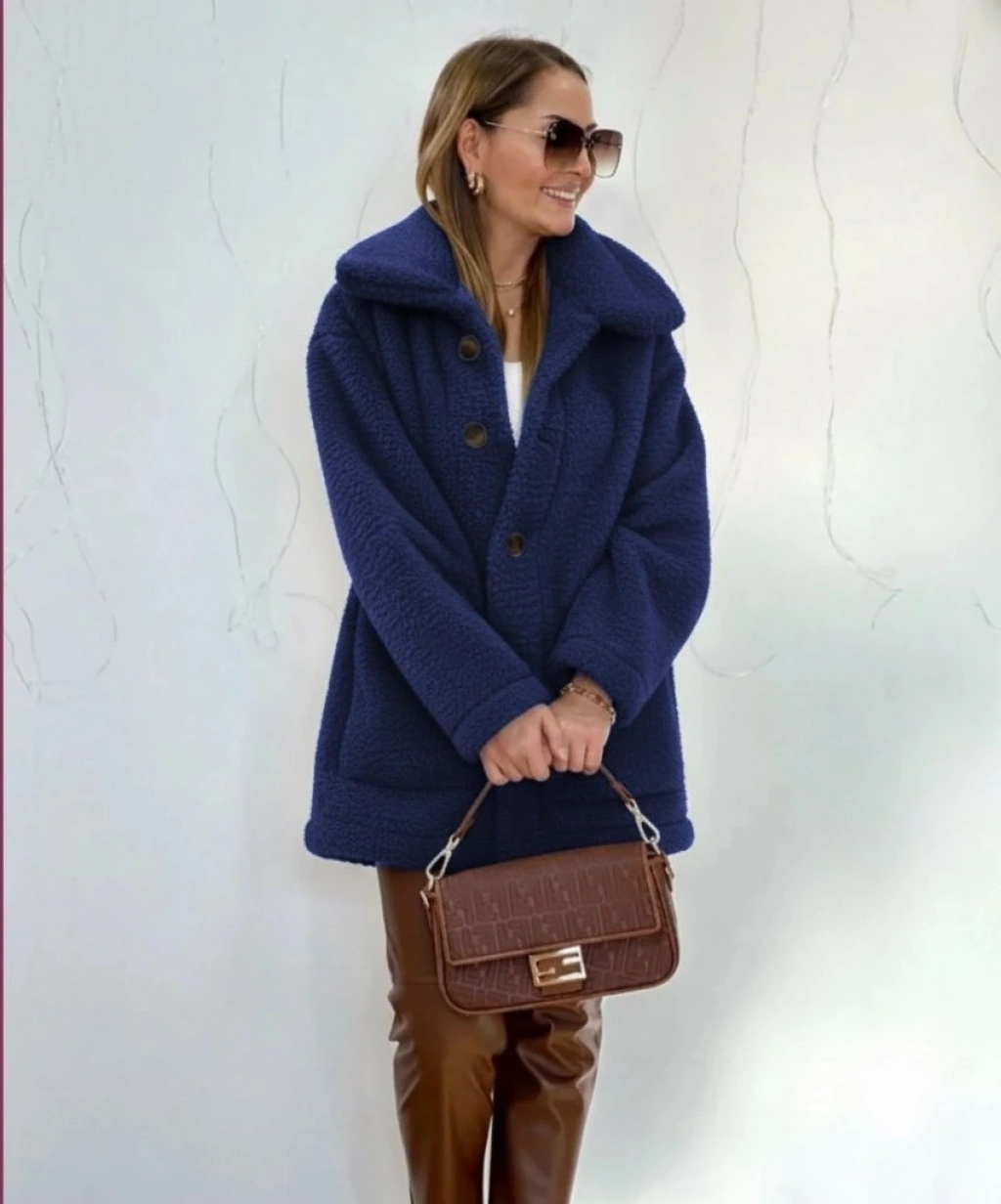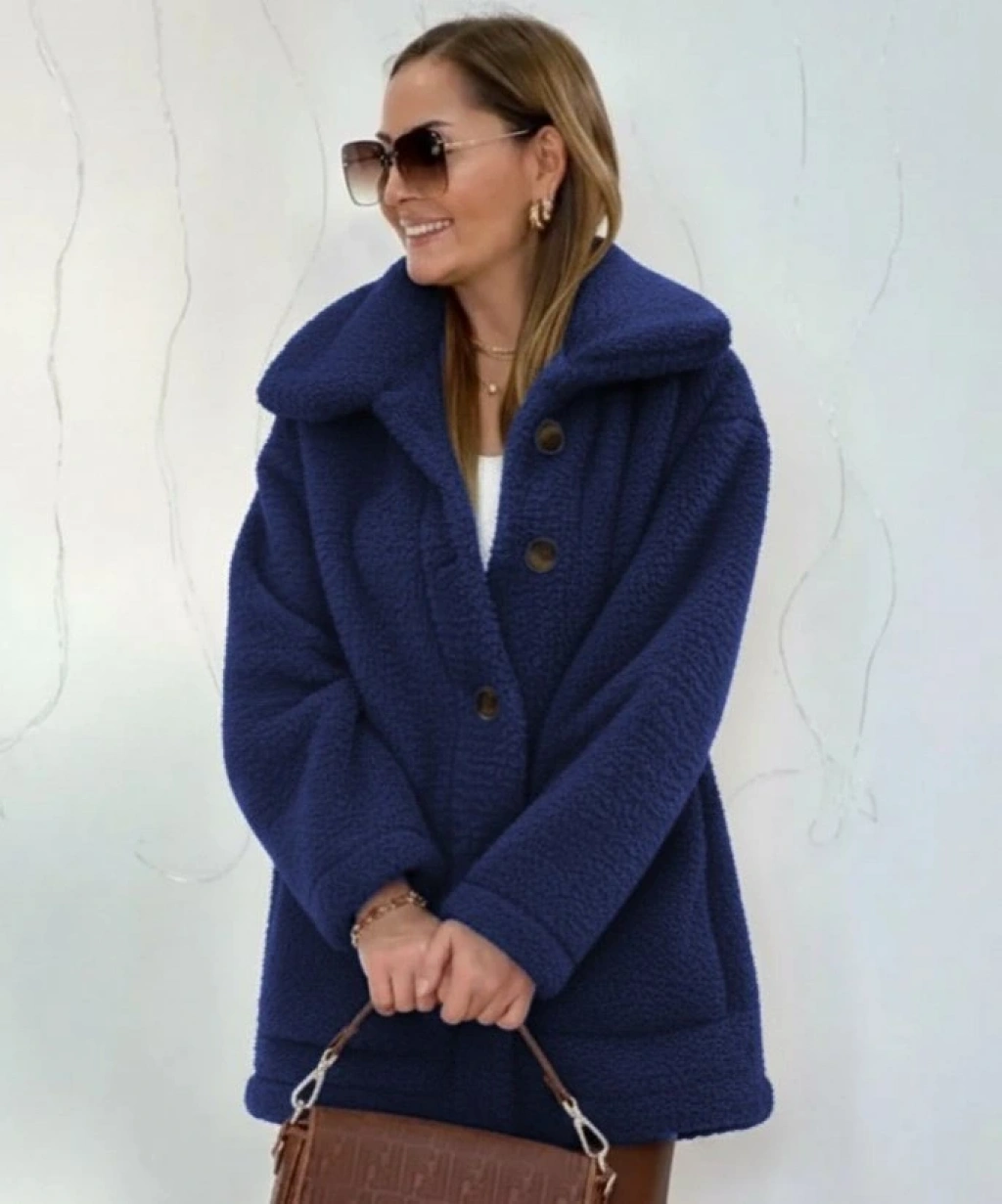 Kadın Uzun Kollu Yakalı önden Düğmeli Welsoft Kaban