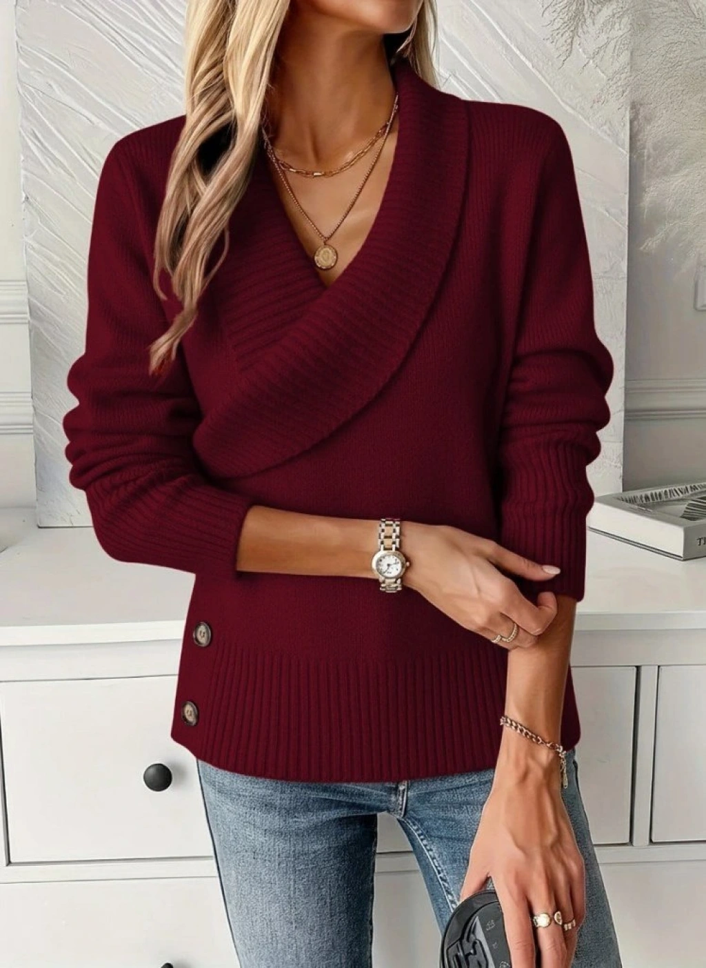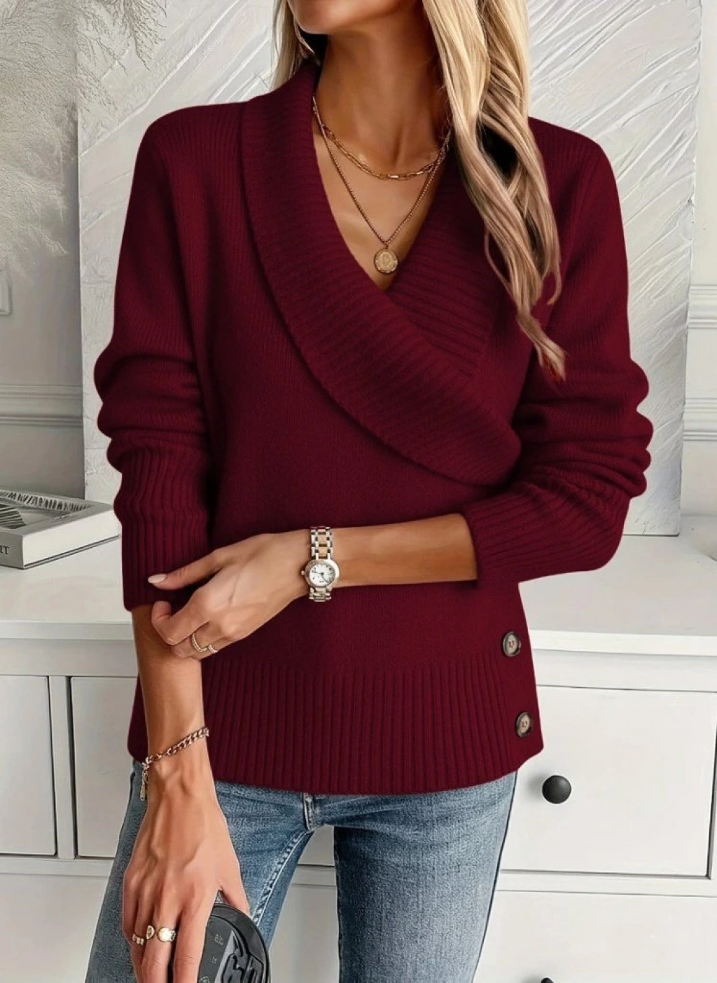 Kadın Uzun Kollu Yakalı Yandan Düğmeli Triko Bluz
