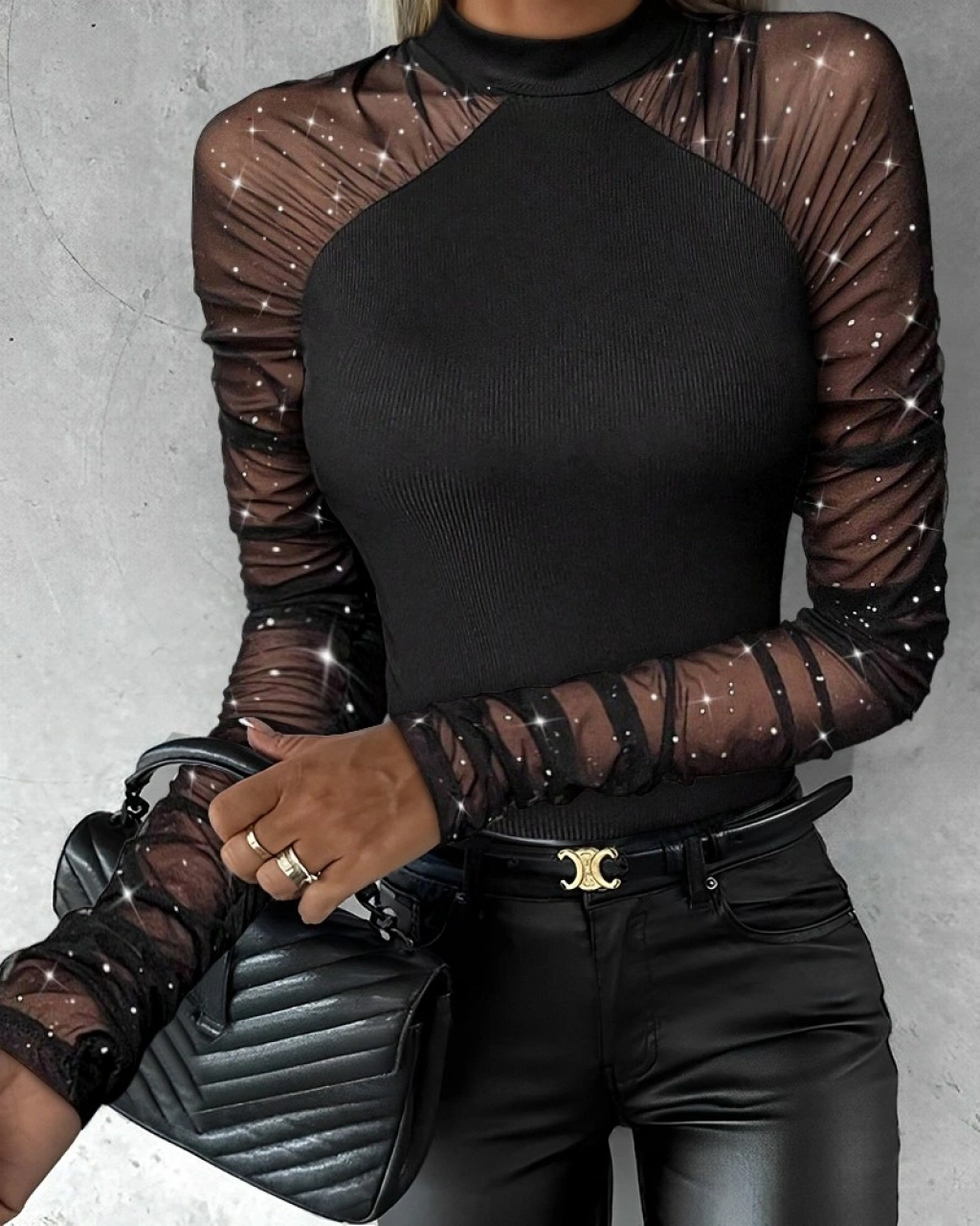Kadın Uzun Kollu Yarı Balıkçı Yaka Tüllü Kaşkorse Bluz
