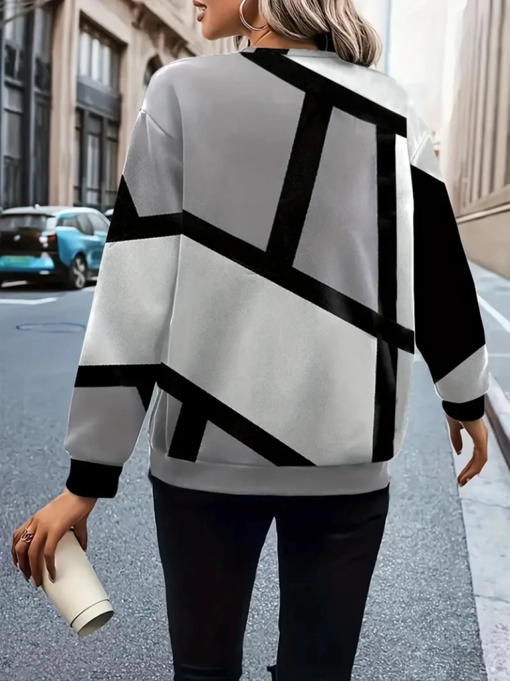 Kadın Uzun Kollu Yuvarlak Yaka Fermuarlı Desenli şardonlu Bluz