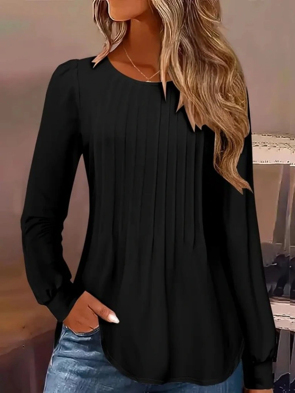 Kadın Uzun Kollu Yuvarlak Yaka Nervürlü Bluz