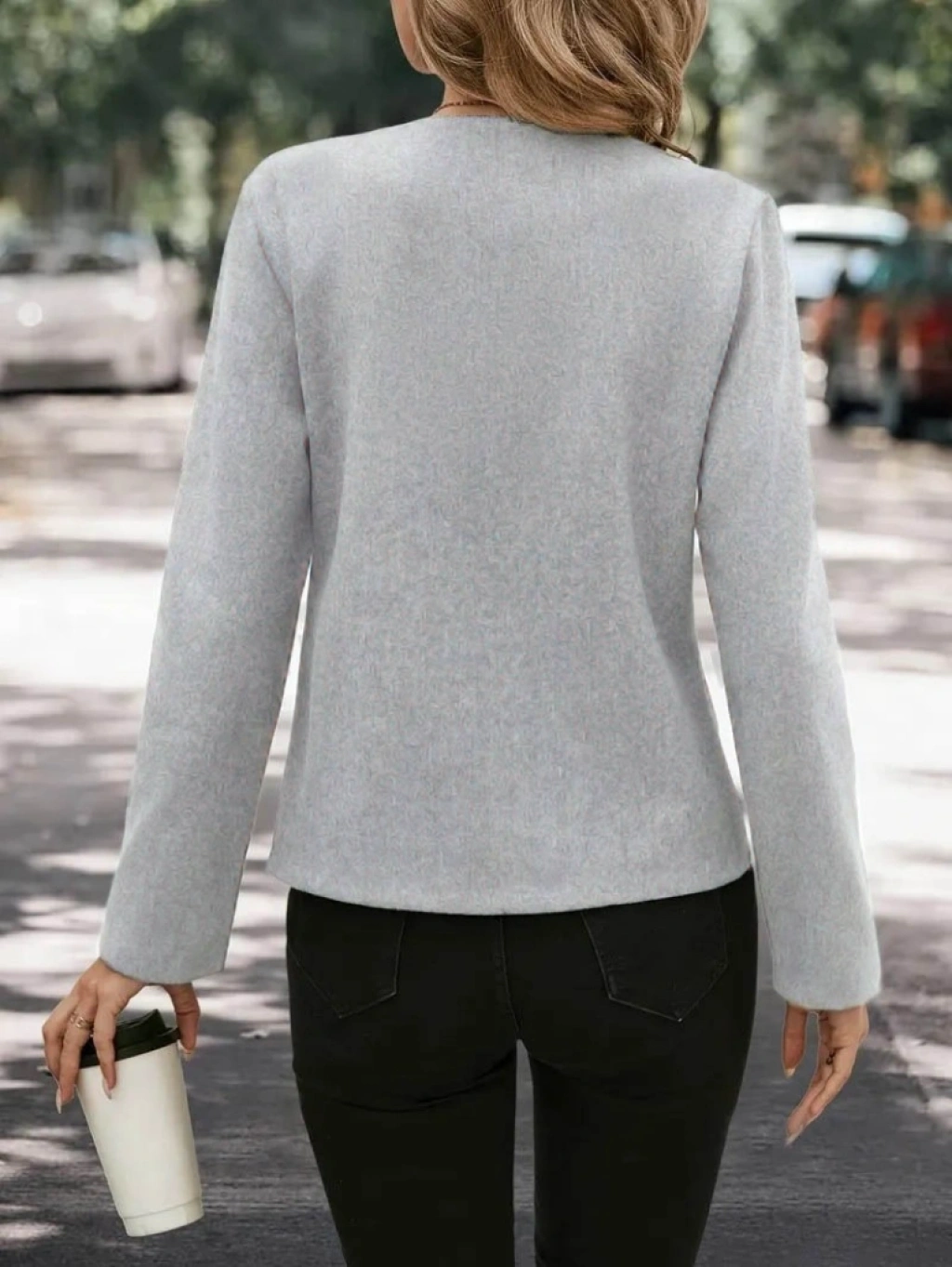 Kadın Uzun Kollu Yuvarlak Yaka önden Düğmeli Kaşe Ceket