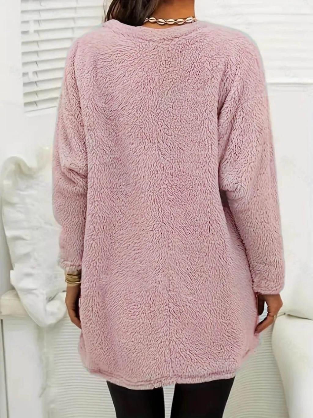 Kadın Uzun Kollu Yuvarlak Yakalı Cepli Peluş Bluz