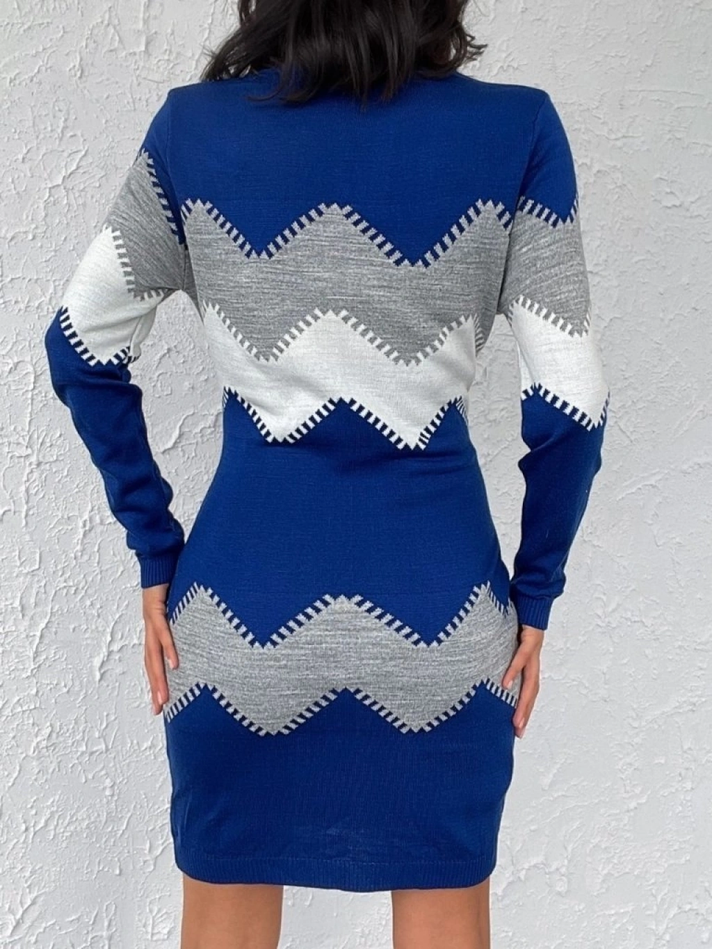 Kadın Uzun Kollu Zigzag Desen Triko Elbise
