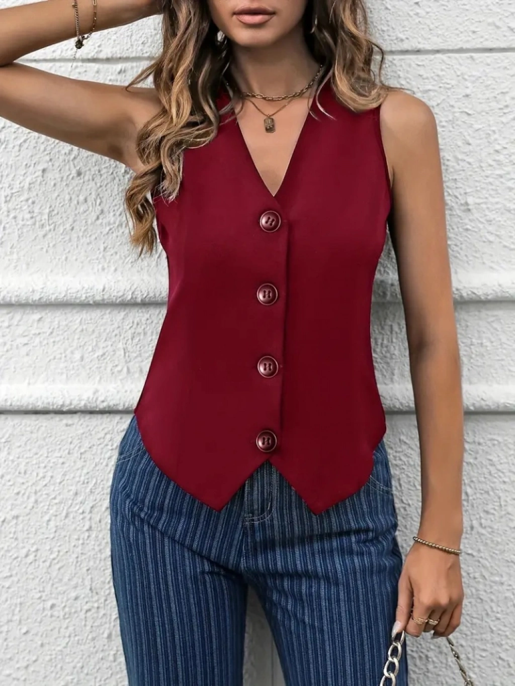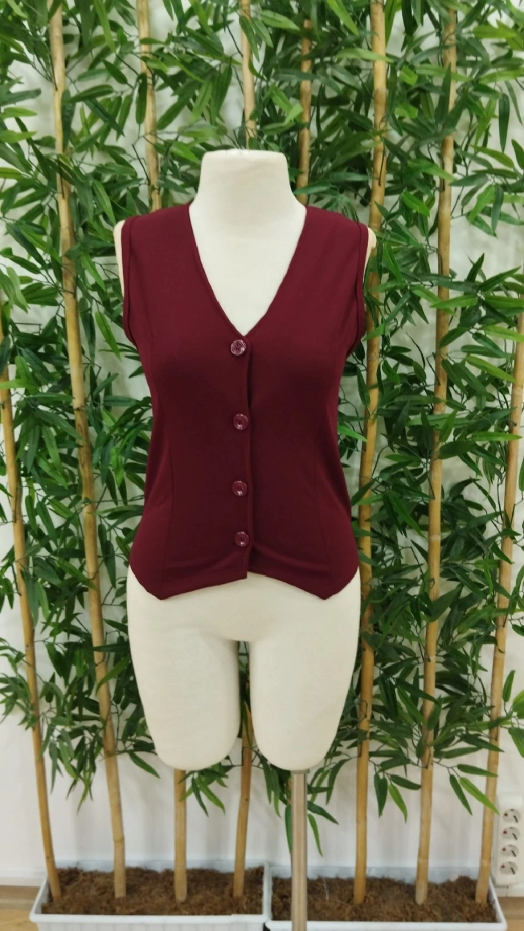 Kadın V Yaka önden Düğmeli Ithal Krep Yelek