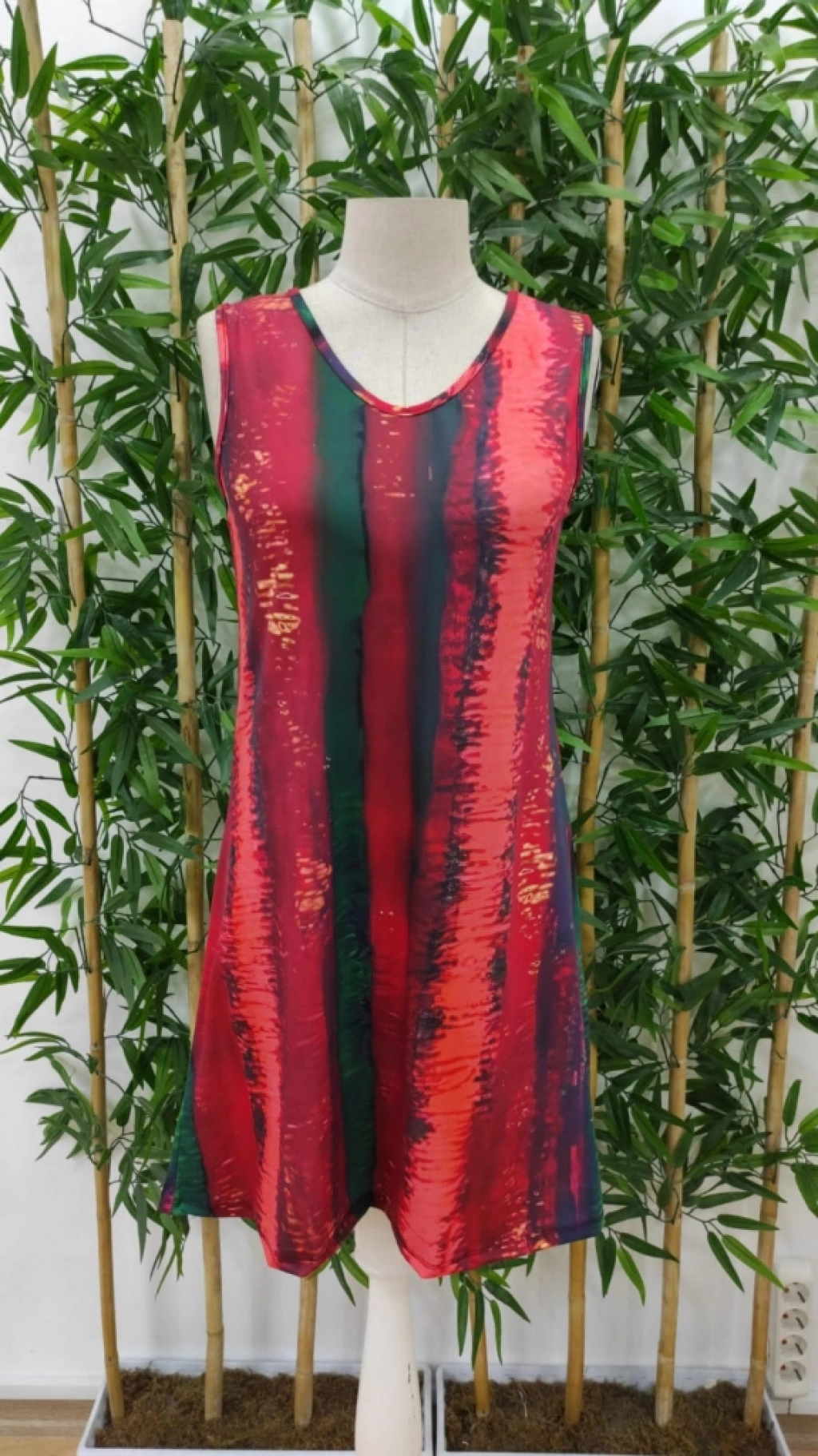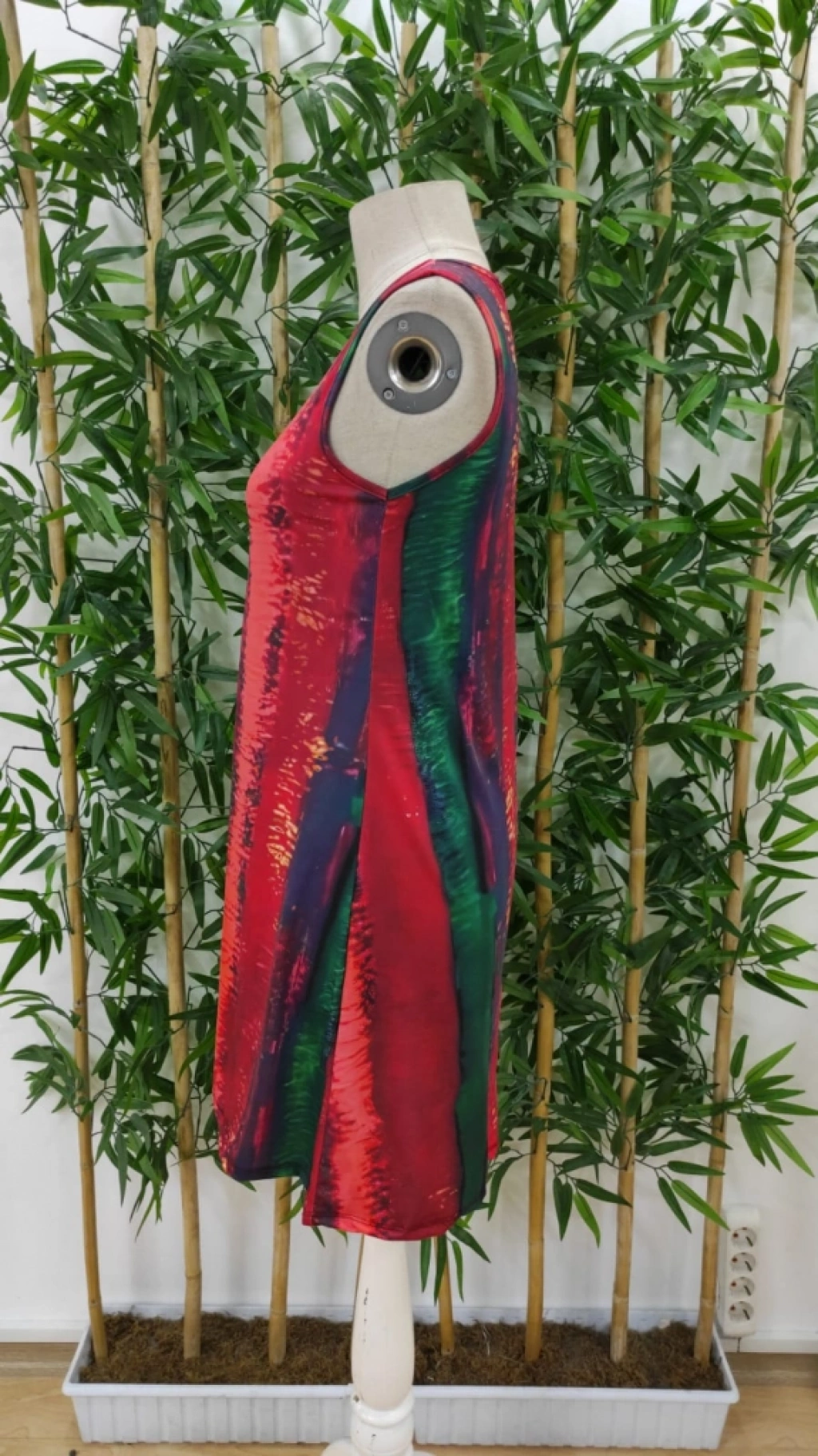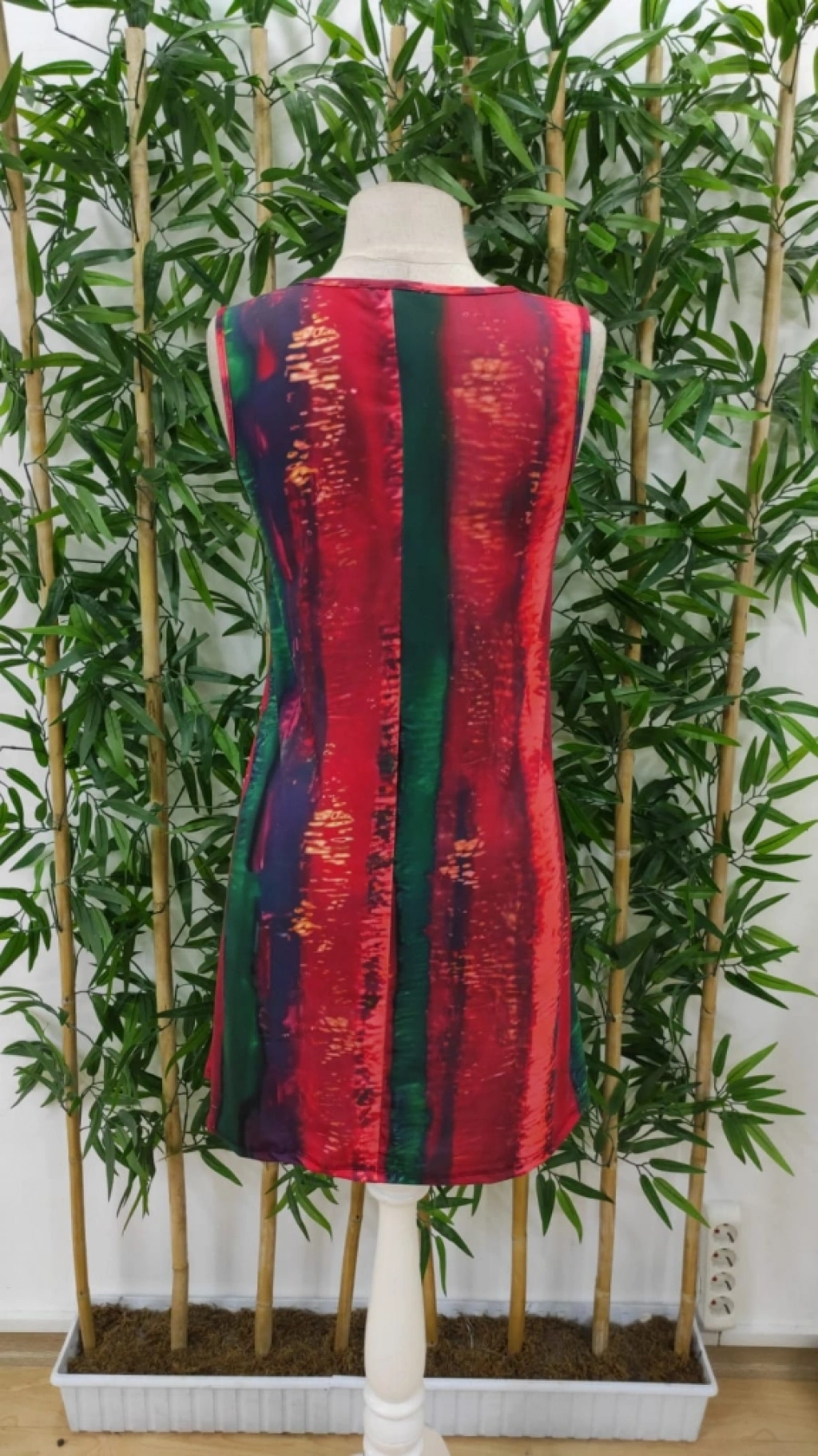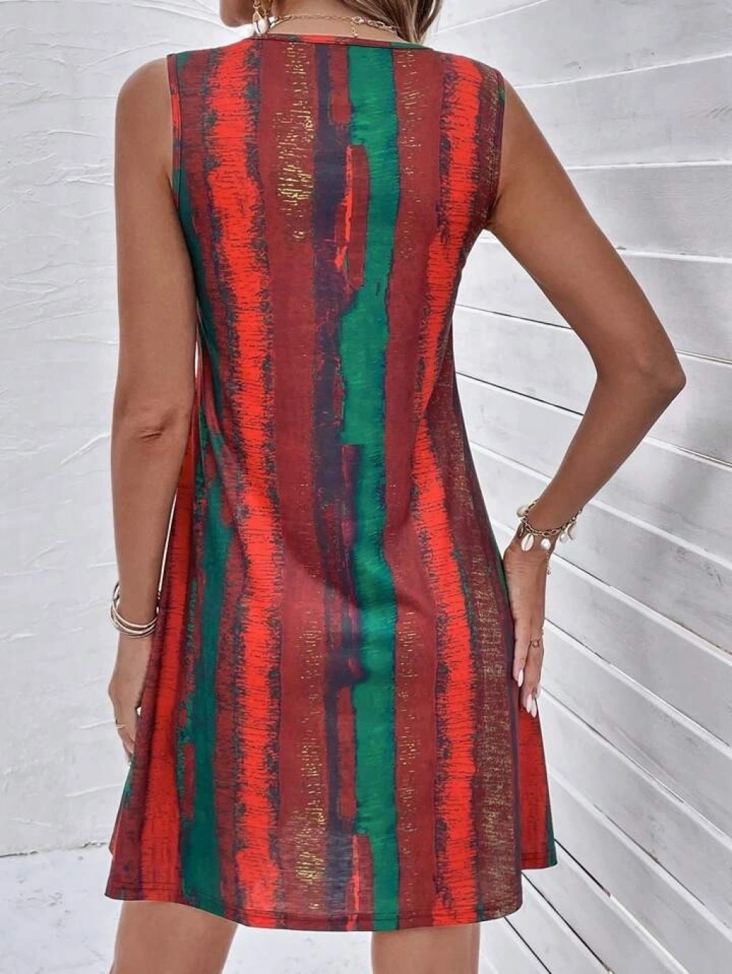 Kadın V Yaka Sıfır Kol Desenli Süprem Elbise