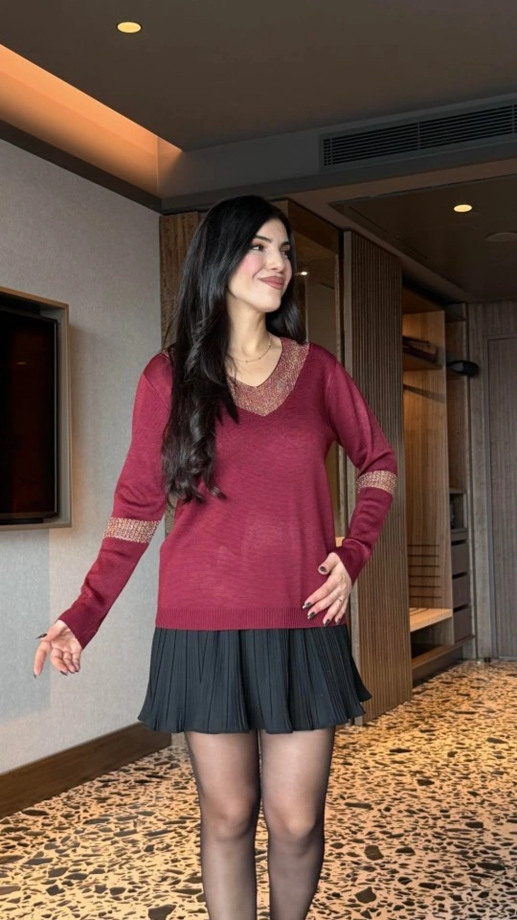 Modelin Ölçüleri: Boy:165, Kg:55, Göğüs:90, Bel:72, Kalça: 100