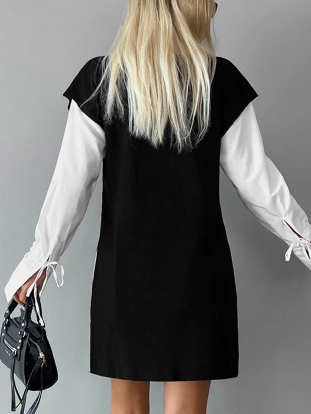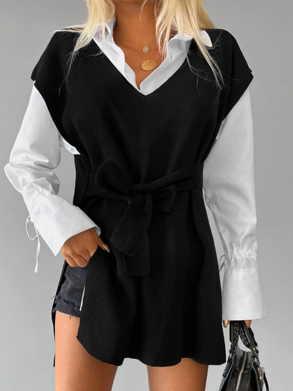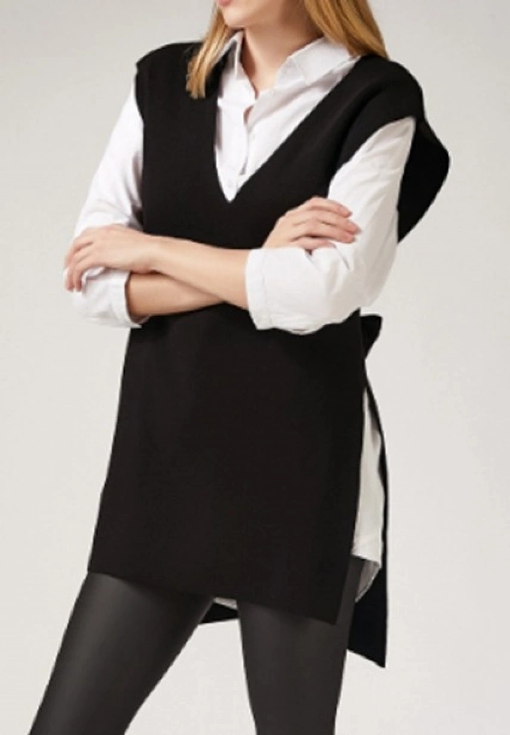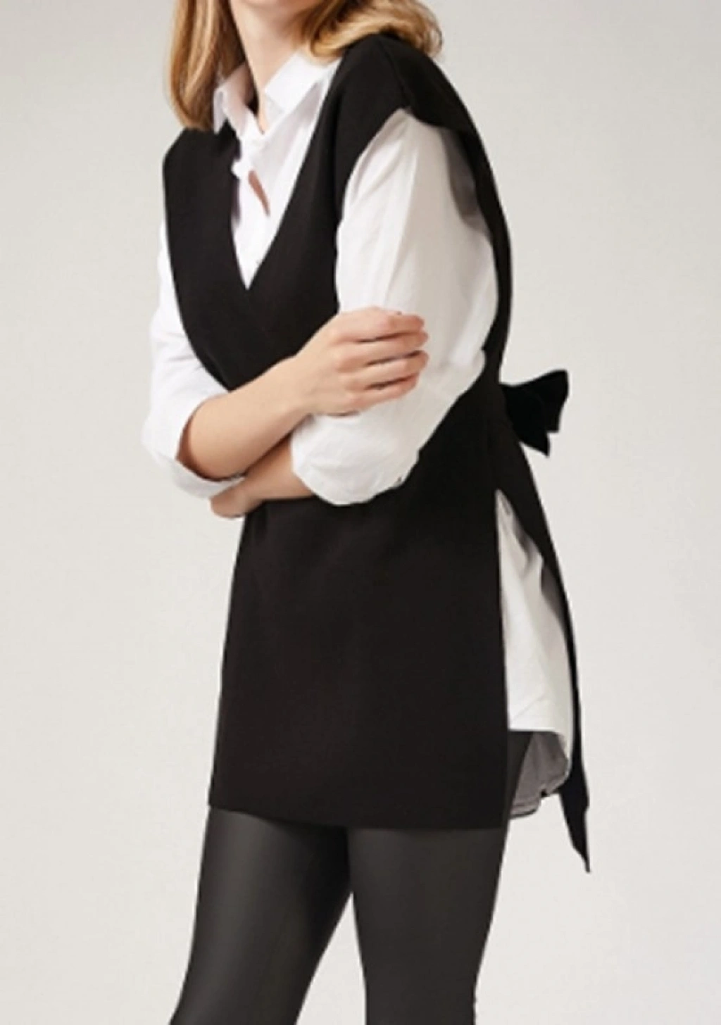 Kadın V Yaka Yırtmaç Detay Arkadan Bağlamalı Triko Bluz