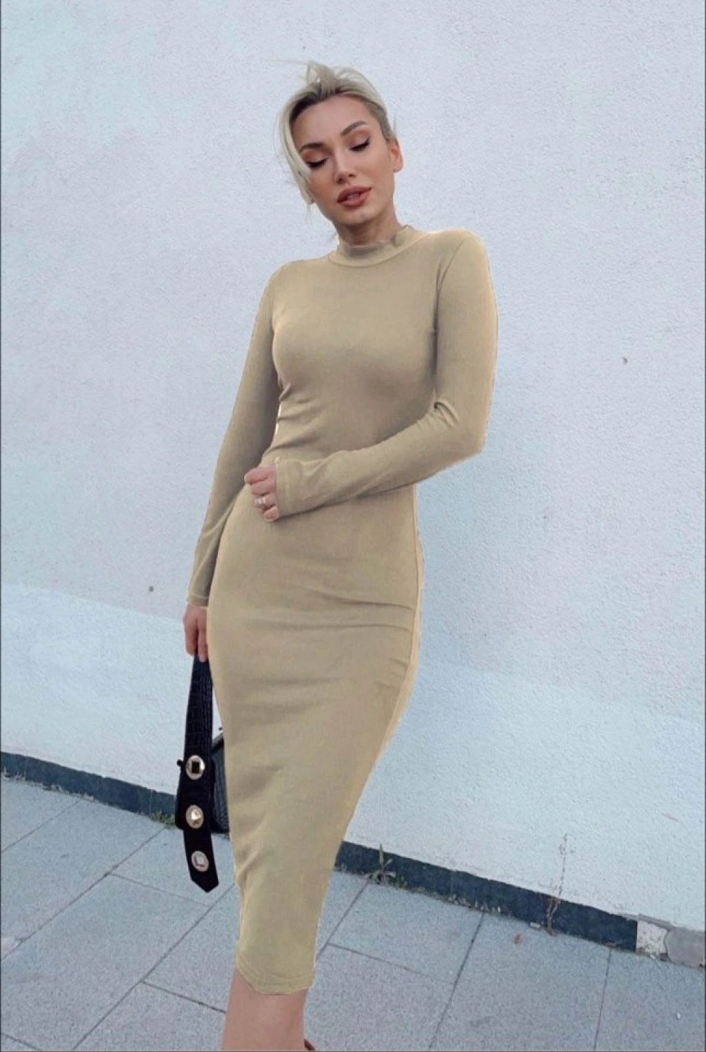 Kadın Yarım Balıkçı Yaka Süet Kumaş Fırsat ürün Midi Boy Elbise