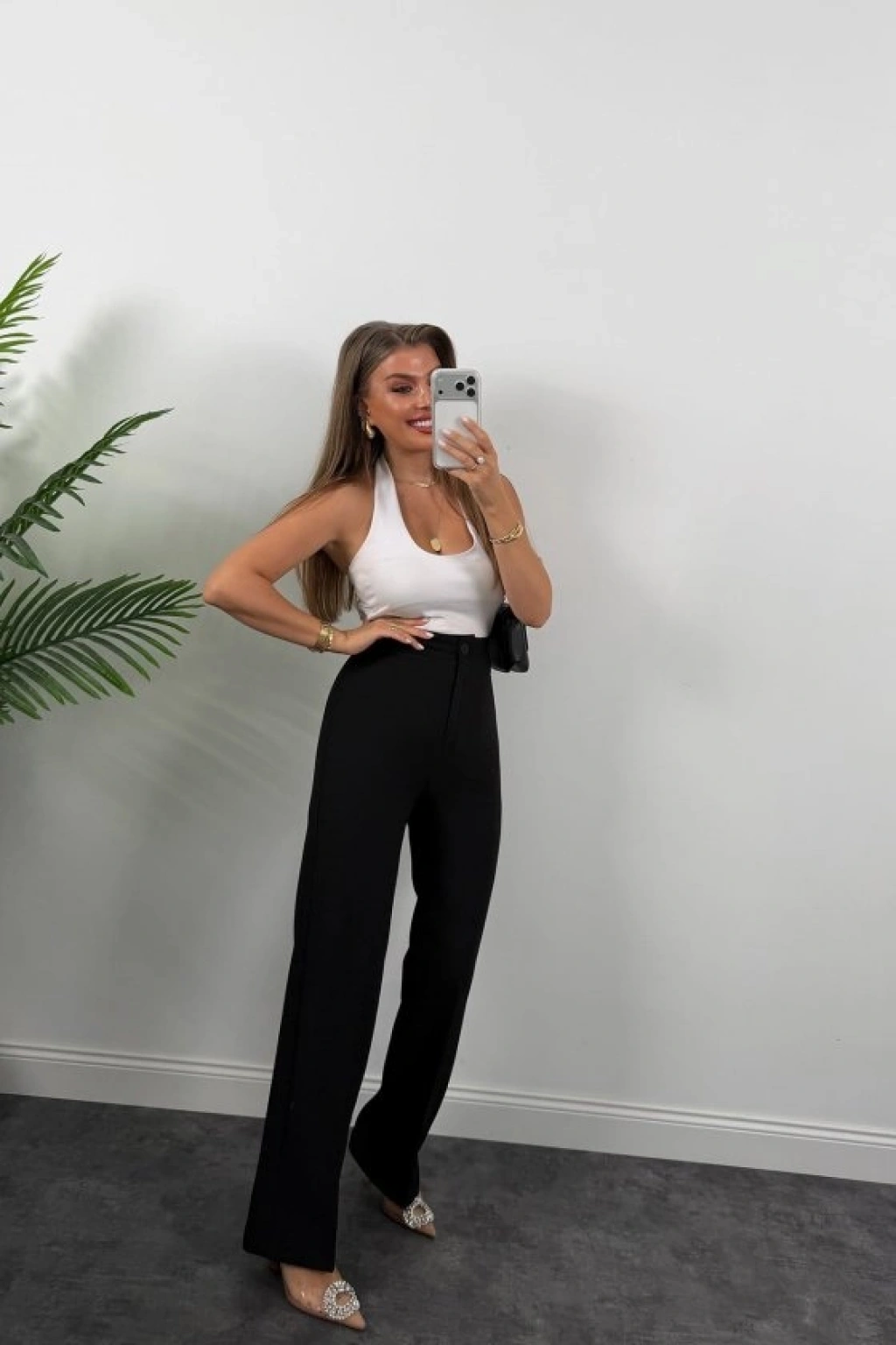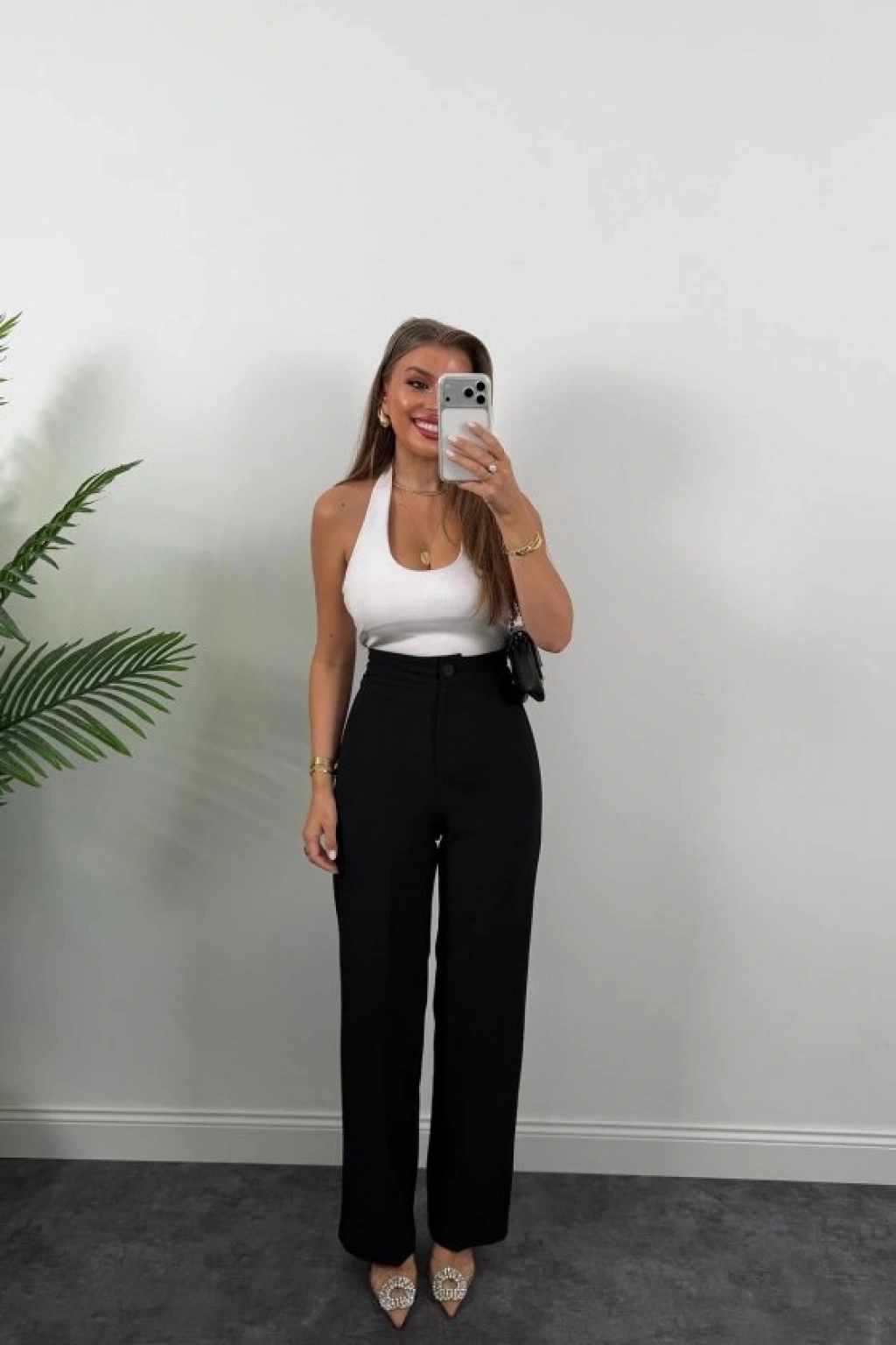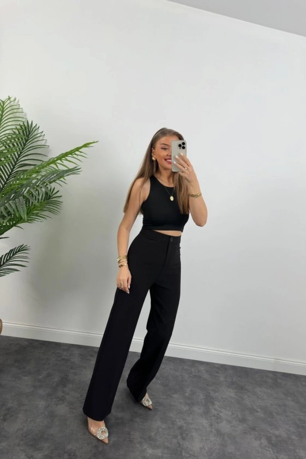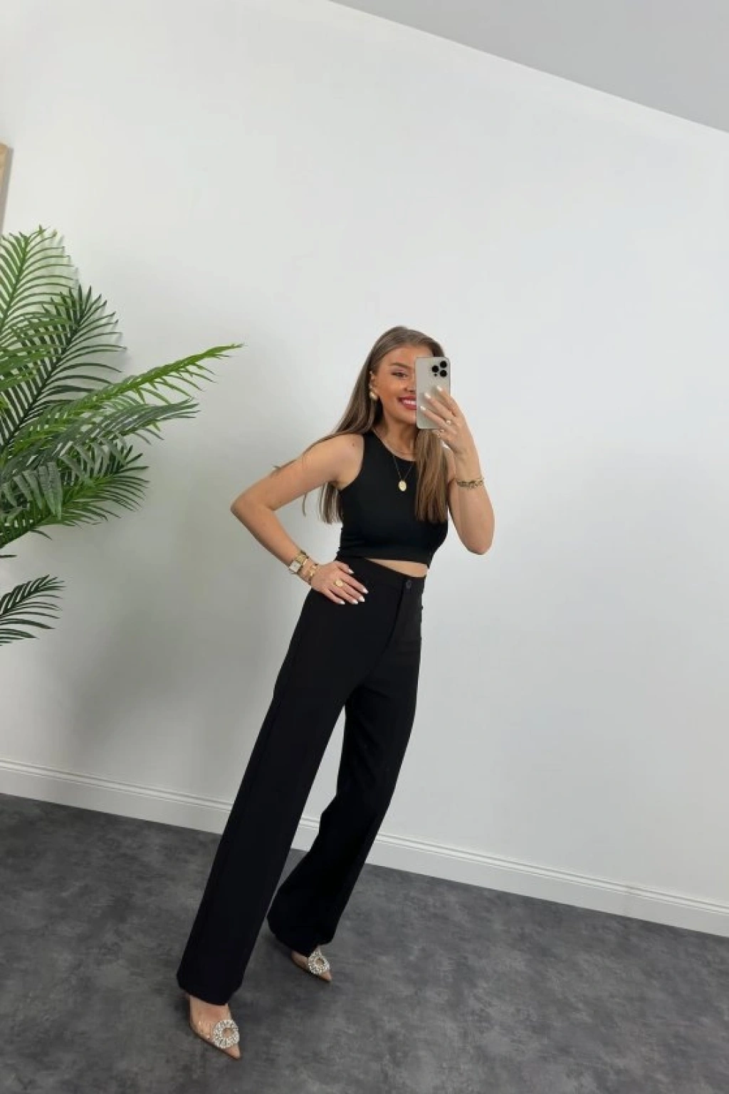 Kadın Yüksek Bel Atlas Kumaş Palazzo Pantolon