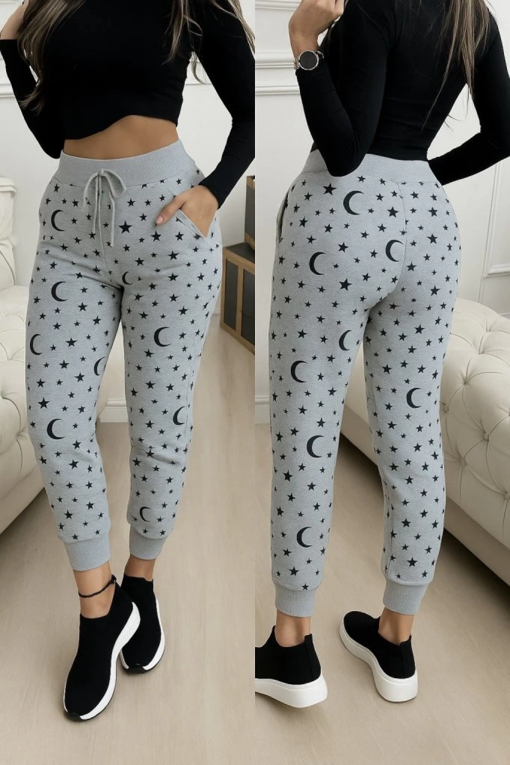 Kadın Yüksek Bel Bağcıklı Desenli Iki Iplik Pantolon