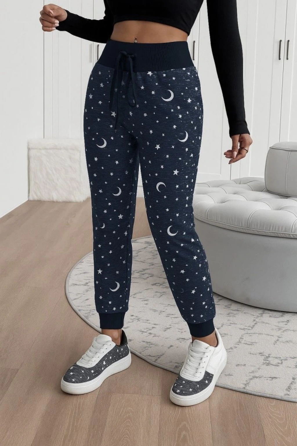 Kadın Yüksek Bel Bağcıklı Desenli Iki Iplik Pantolon