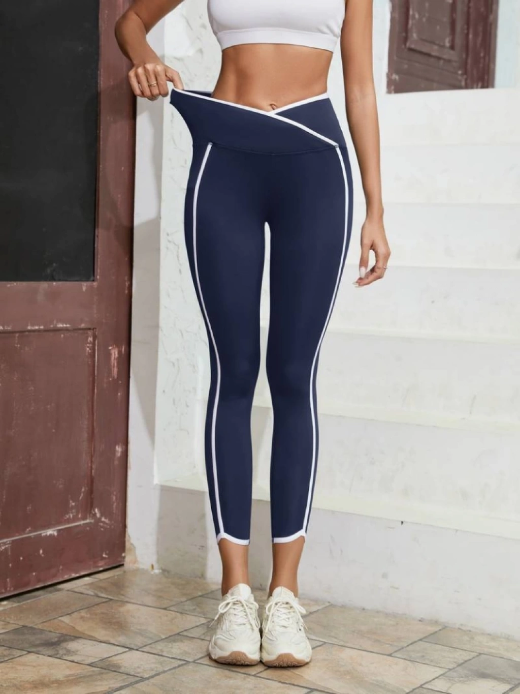 Kadın Yüksek Bel çapraz Bel şerit Detay Dalgıç Tayt