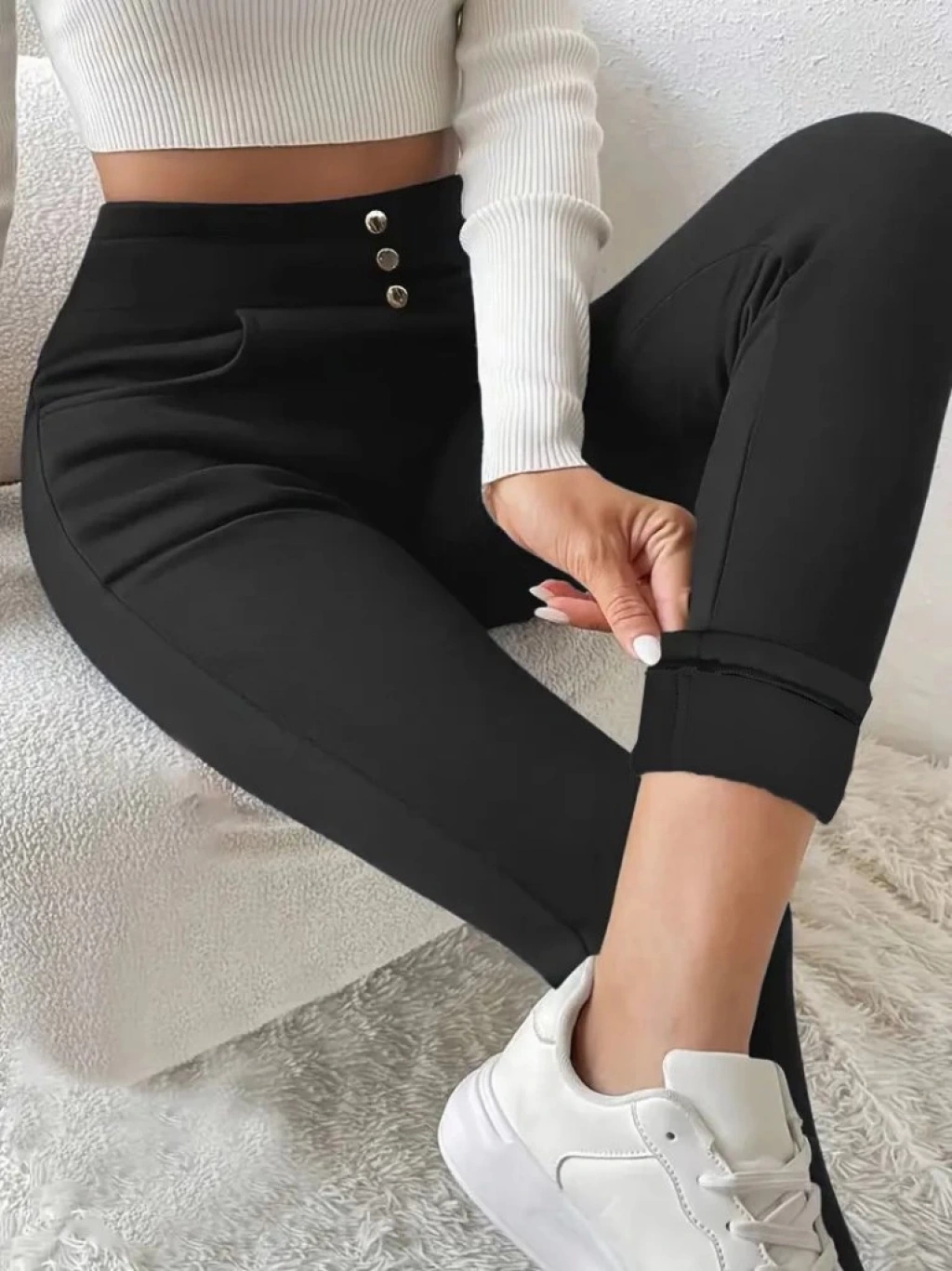 Kadın Yüksek Bel Cepli Düğmeli şardonlu Dalgıç Tayt Pantolon