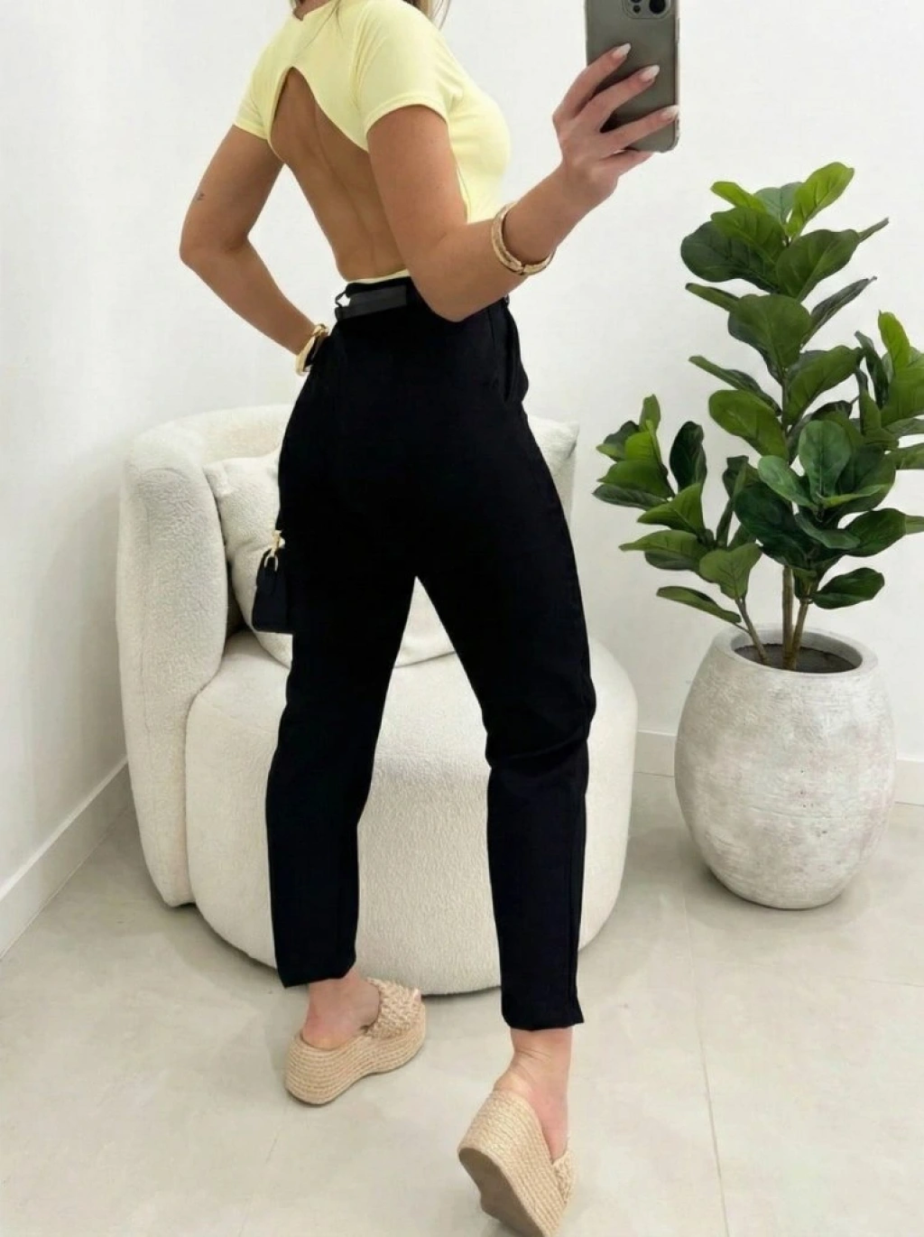 Kadın Yüksek Bel Kemersiz Ithal Krep Pantolon