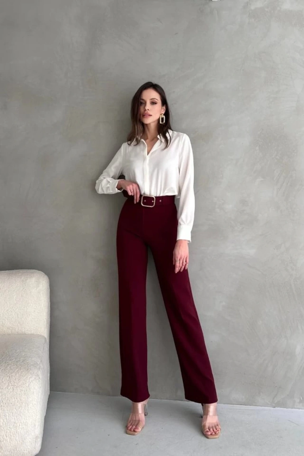 Kadın Yüksek Bel Krep Kumaş Full Likralı Ispanyol Paça Kemer Dahil Pantolon