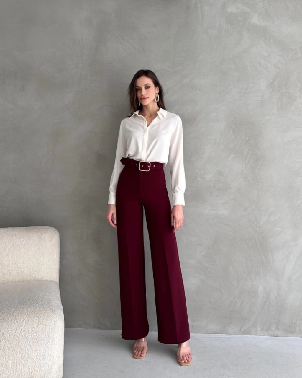 Kadın Yüksek Bel Krep Kumaş Full ikralı Ispanyol Paça Kemer Dahil Pantolon