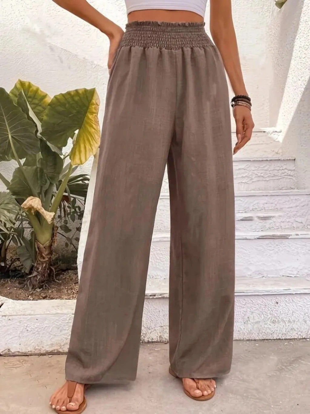 Kadın Yüksek Bel Lastikli Ithal Krep Pantolon
