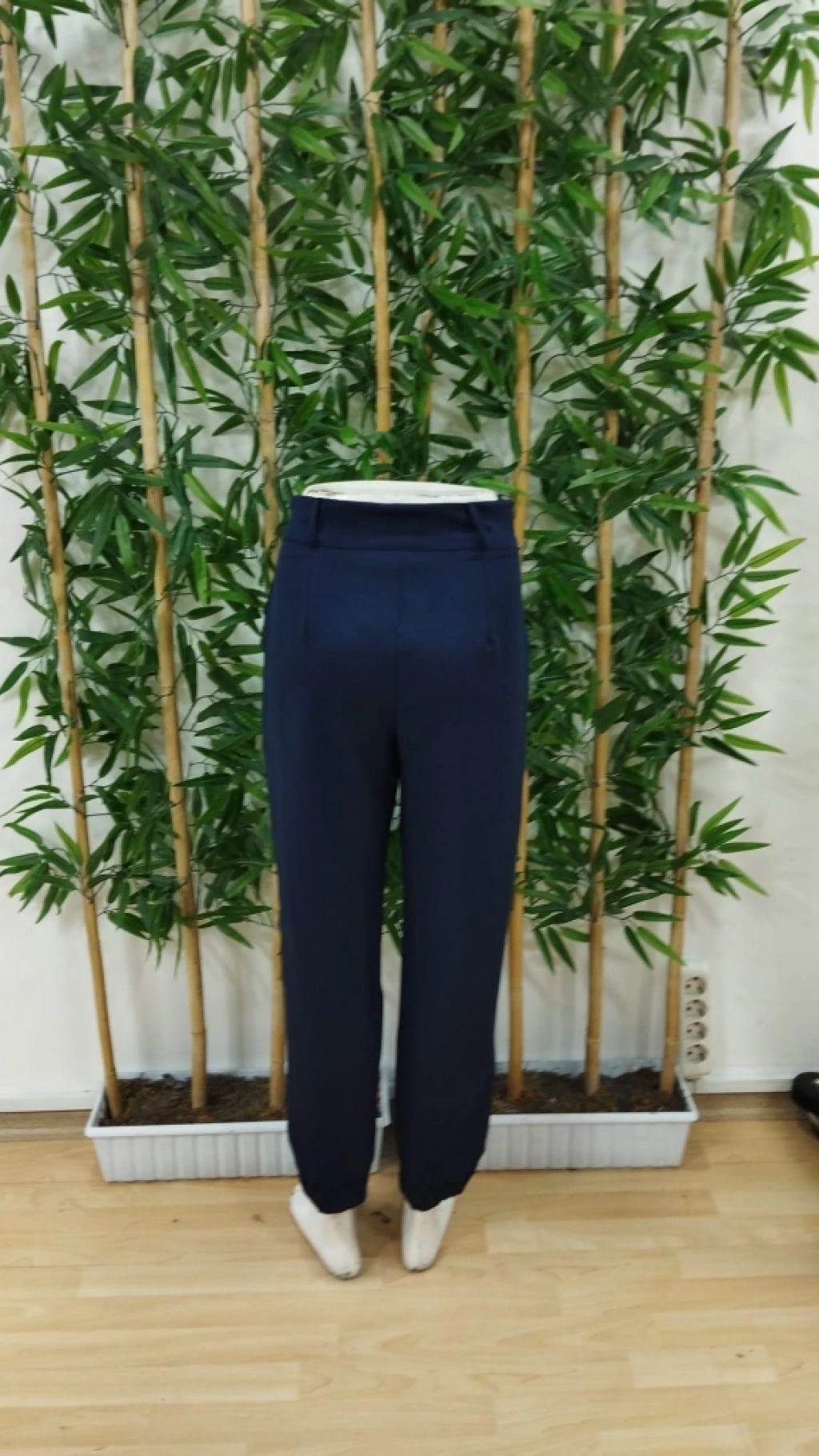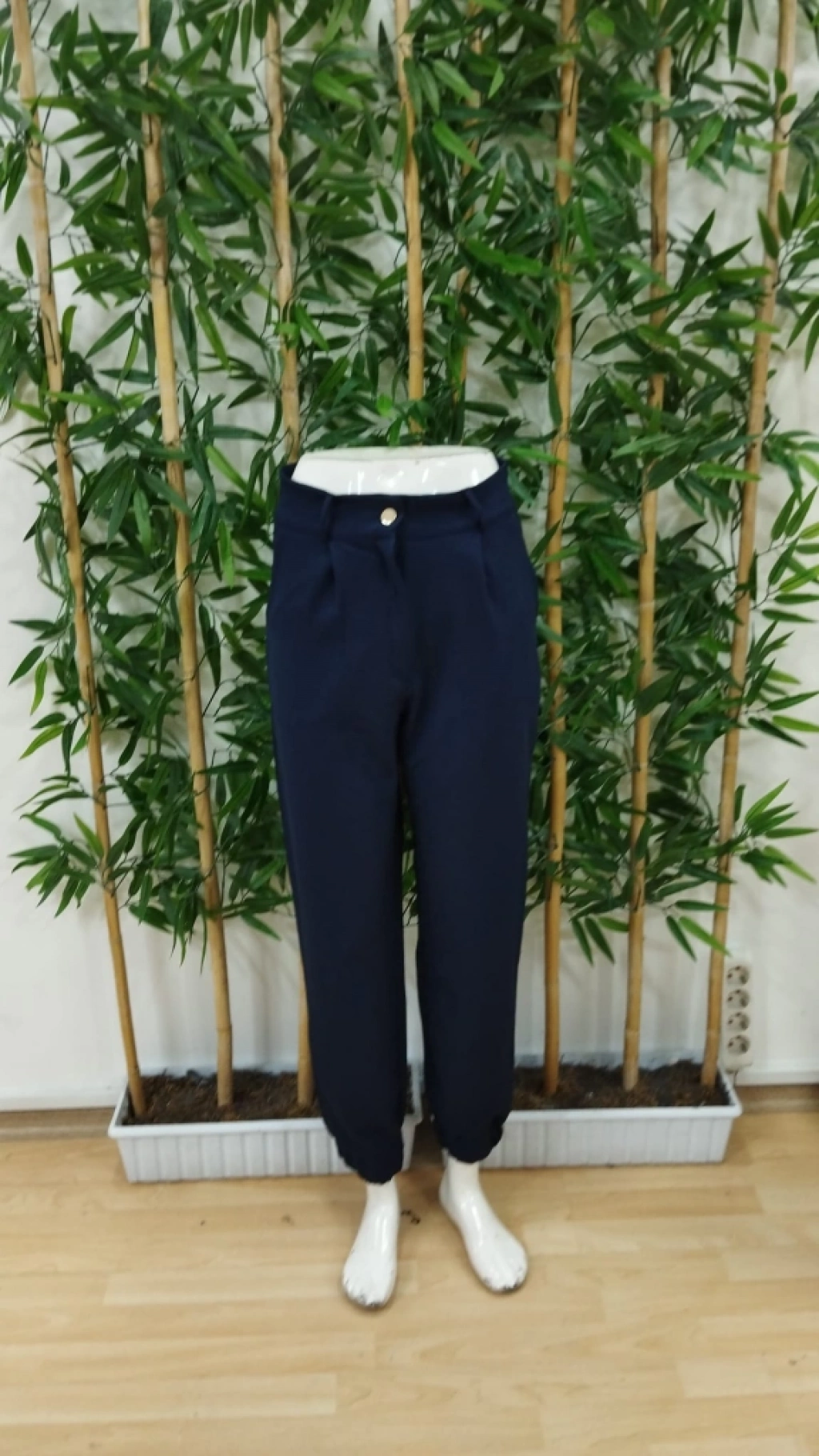 Kadın Yüksek Bel önden Düğmeli Cepli Bilek Lastik Detay Atlas Pantolon