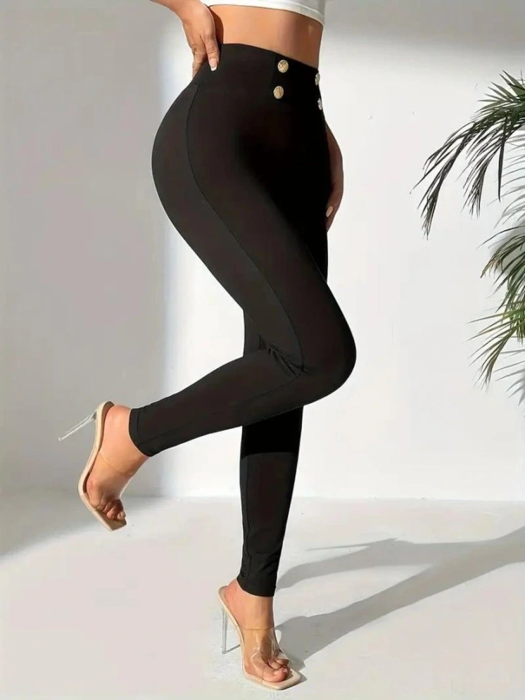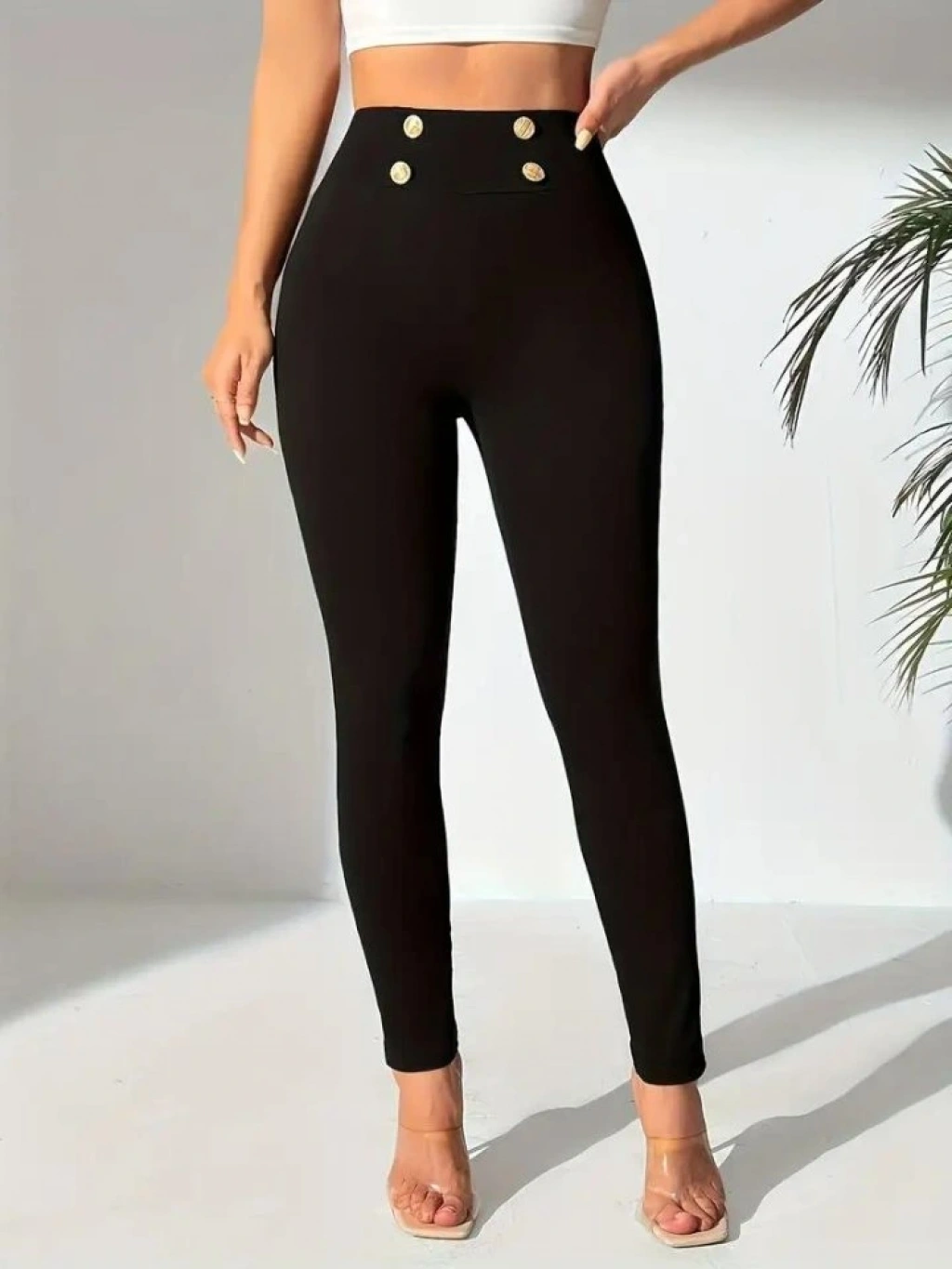Kadın Yüksek Bel önden Düğmeli Dalgıç Tayt