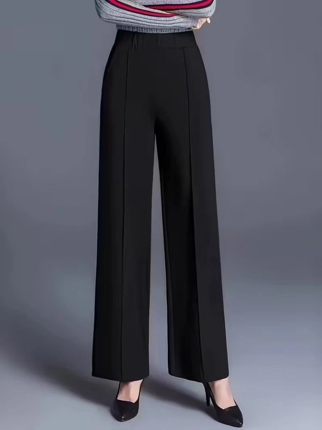Kadın Yüksek Bel önü Nervürlü Paçaya Doğru Geniş Ithal Krep Pantolon