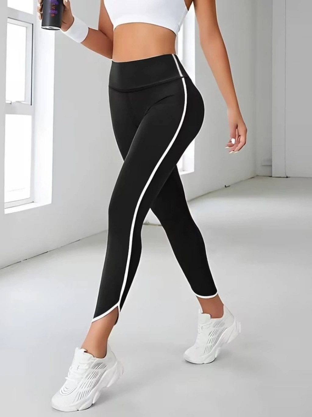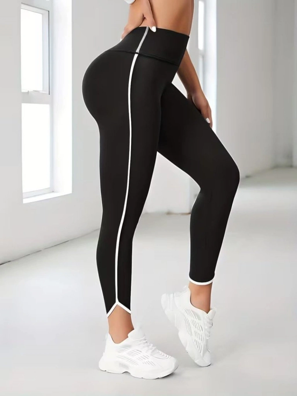 Kadın Yüksek Bel Yan şerit Detaylı Dalgıç Tayt