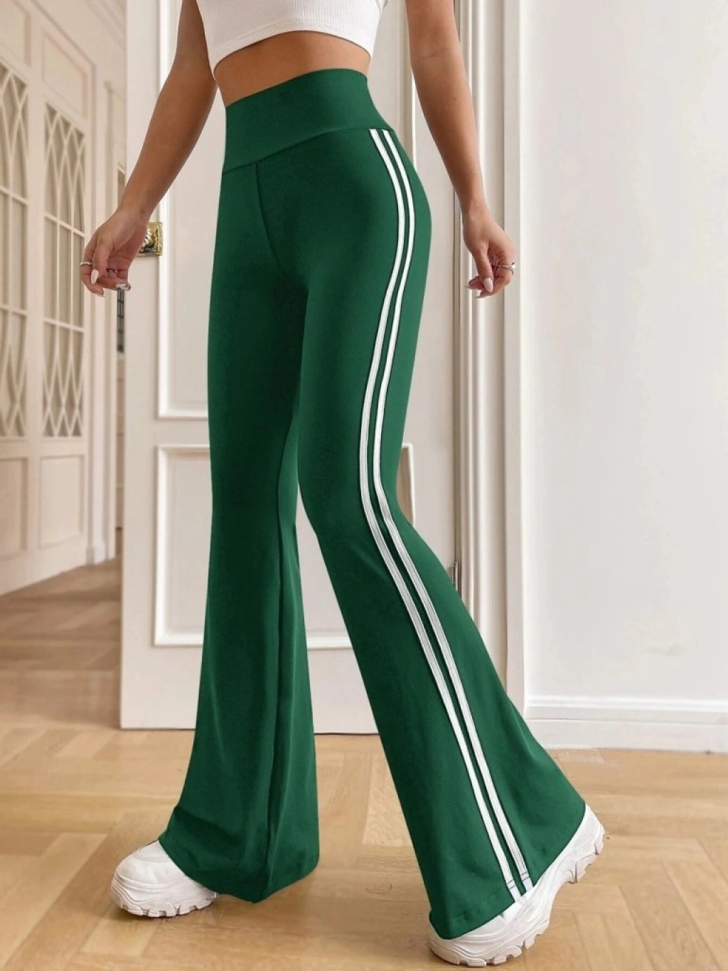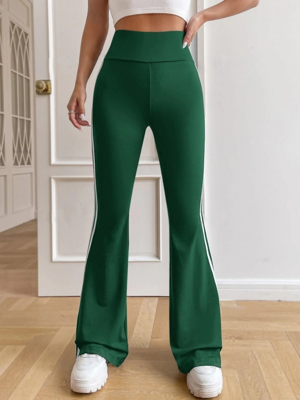 Kadın Yüksek Bel Yanlar şerit Detaylı Ispanyol Paçalı Dalgıç Pantolon
