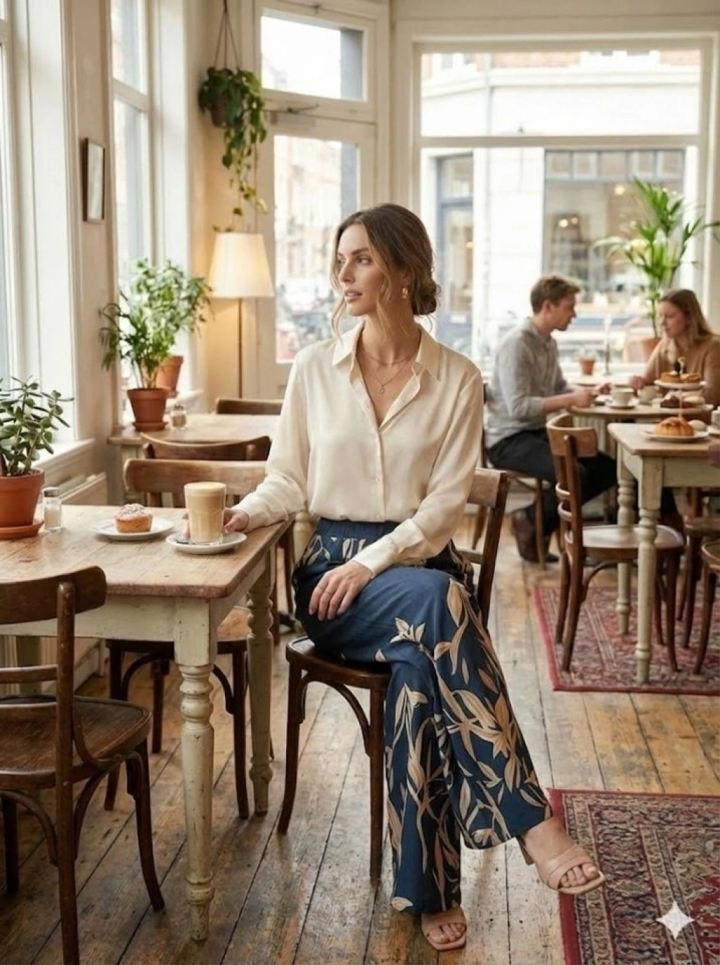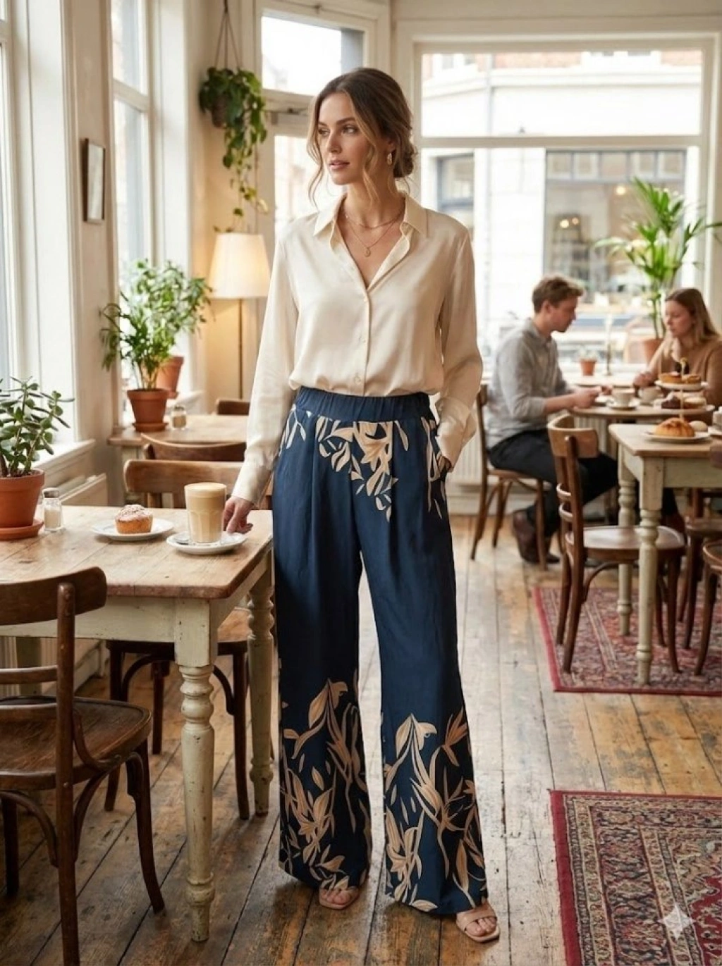 Kadın Yüksek Bel Yaprak Desenli Salaş Pantolon